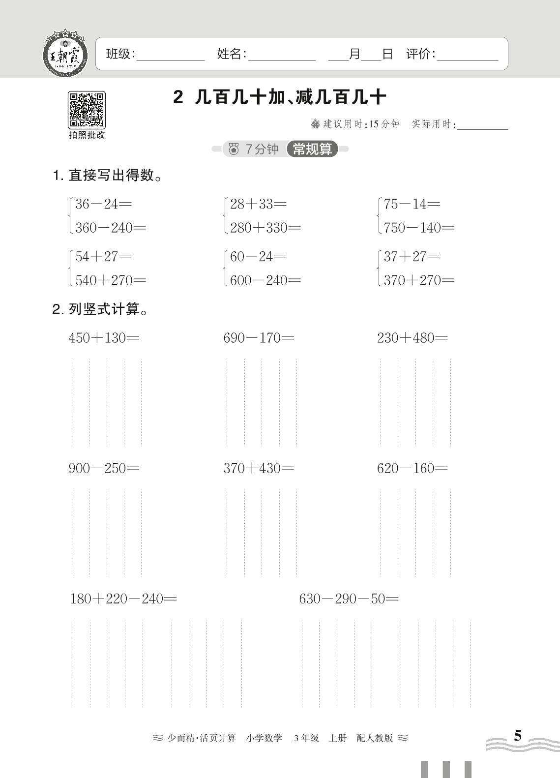 2024秋上册三年级数学人教版 第二单元 万以内的加法和减法(一)——2. 几百几十加、减几百几十