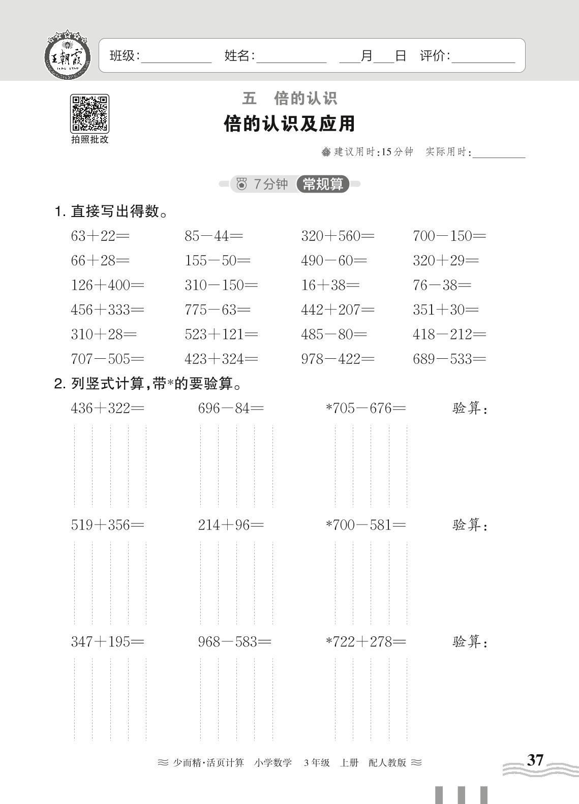 三年级数学人教版上册课时作业
