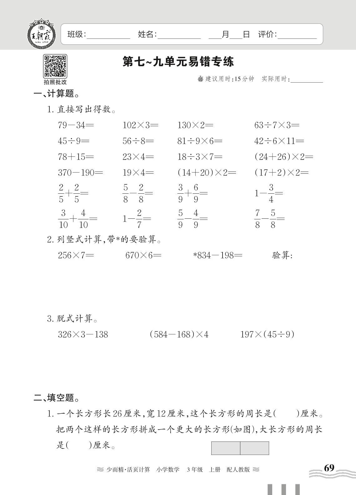 2024秋上册三年级数学人教版 第七~九单元易错专练