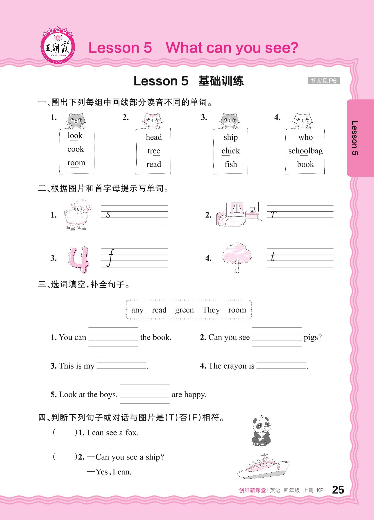 2024秋上册四年级英语科普版 Lesson 5 What can you see?基础训练