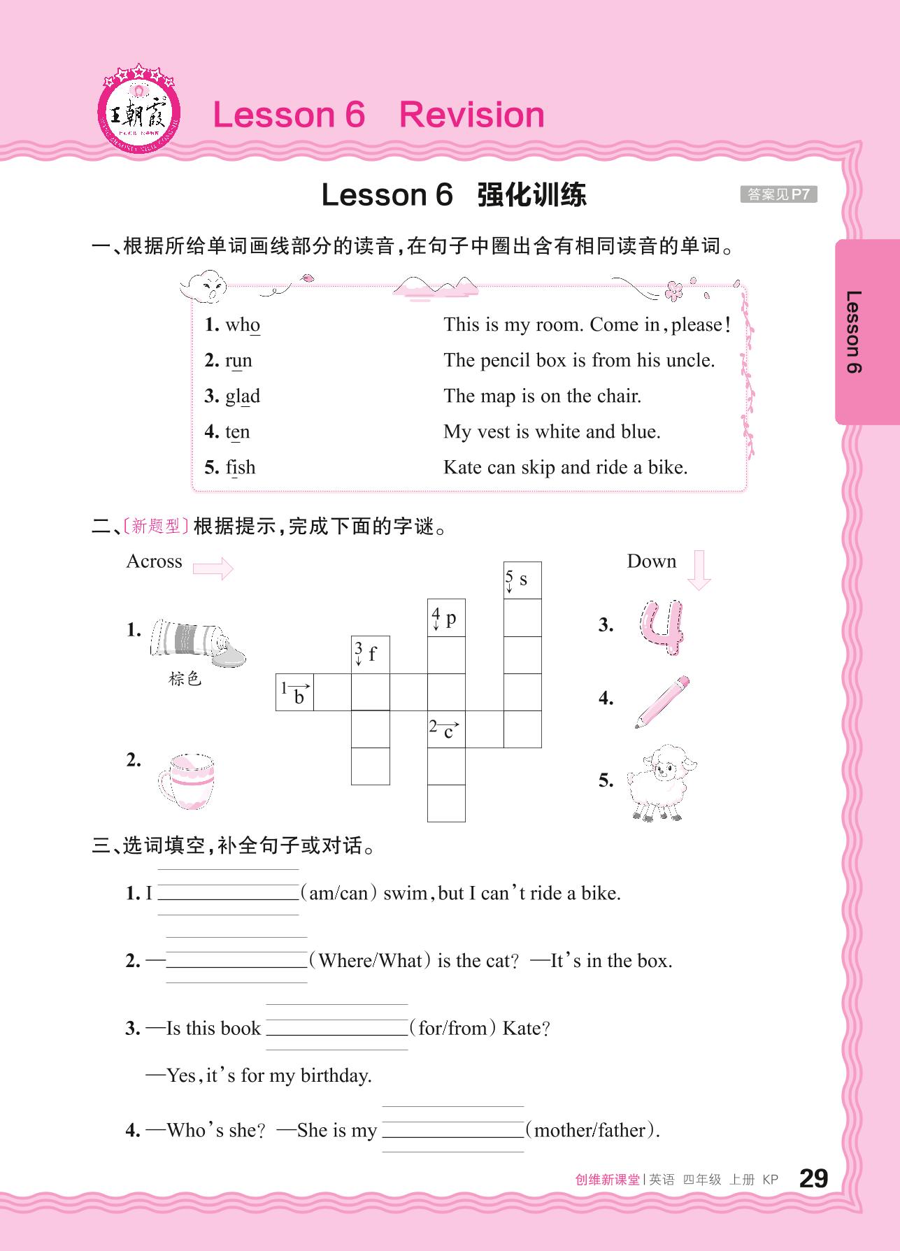 2024秋上册四年级英语科普版 Lesson 6 Revision 强化训练