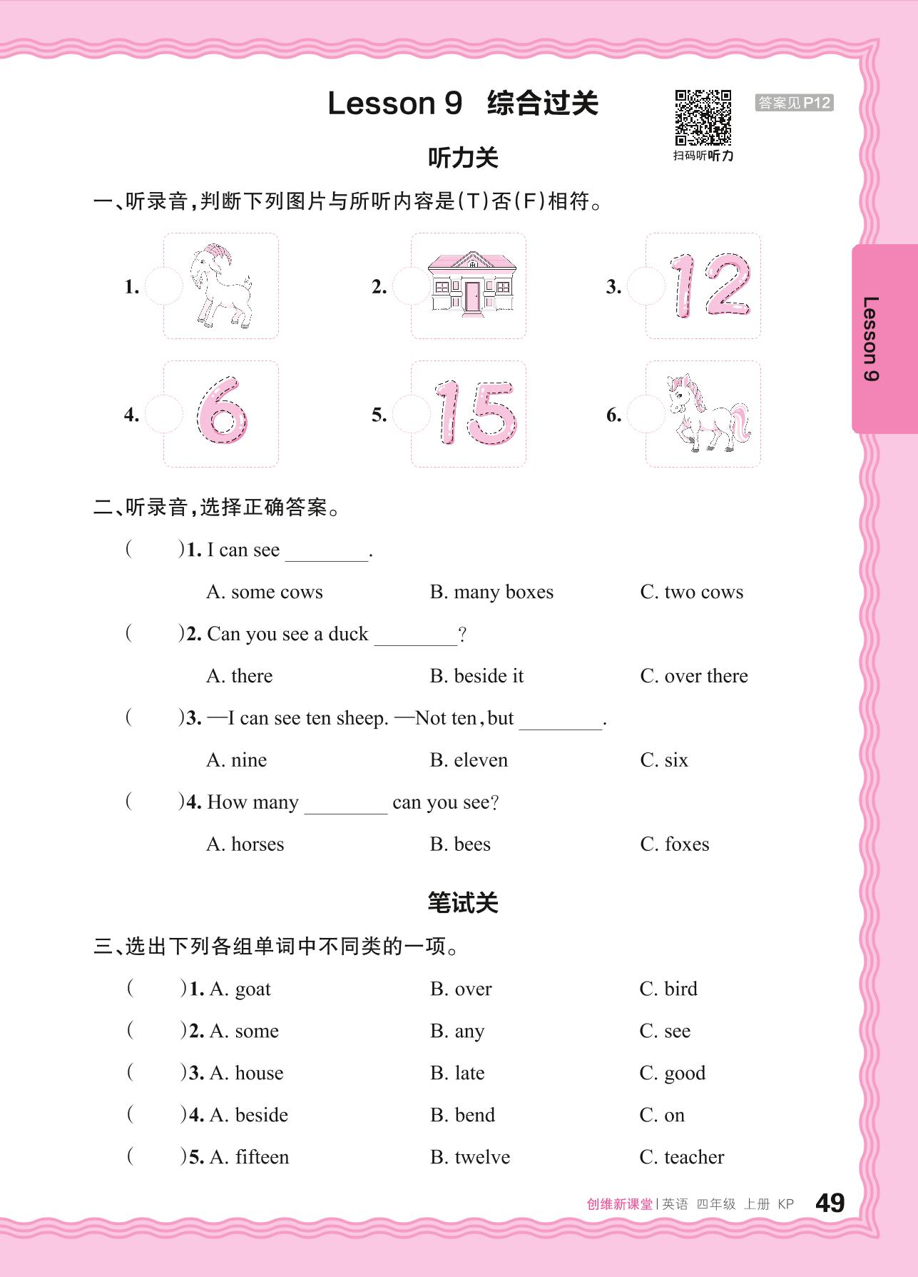 2024秋上册四年级英语科普版 Lesson 9 How many horses can you see?综合过关
