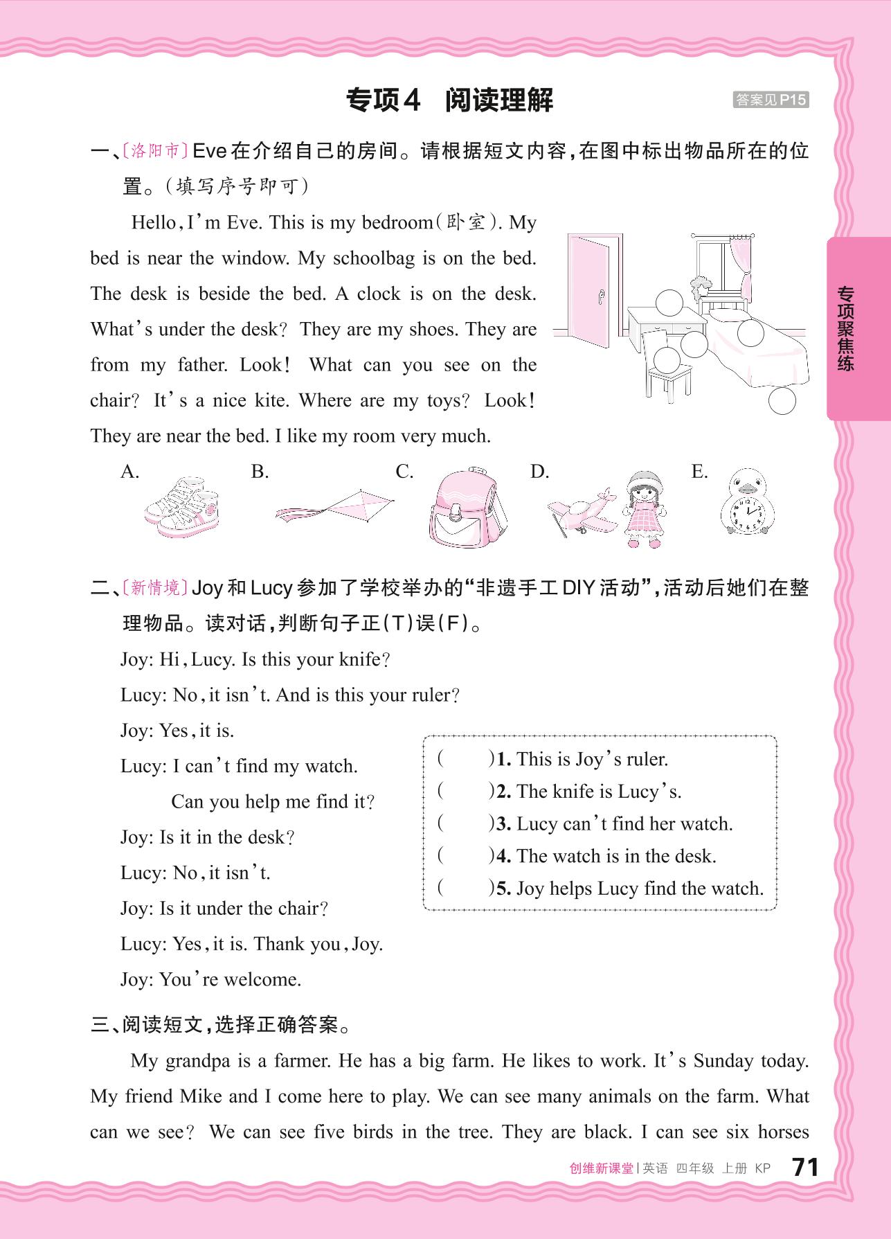 2024秋上册四年级英语科普版 期末专项聚焦练——阅读理解【4】