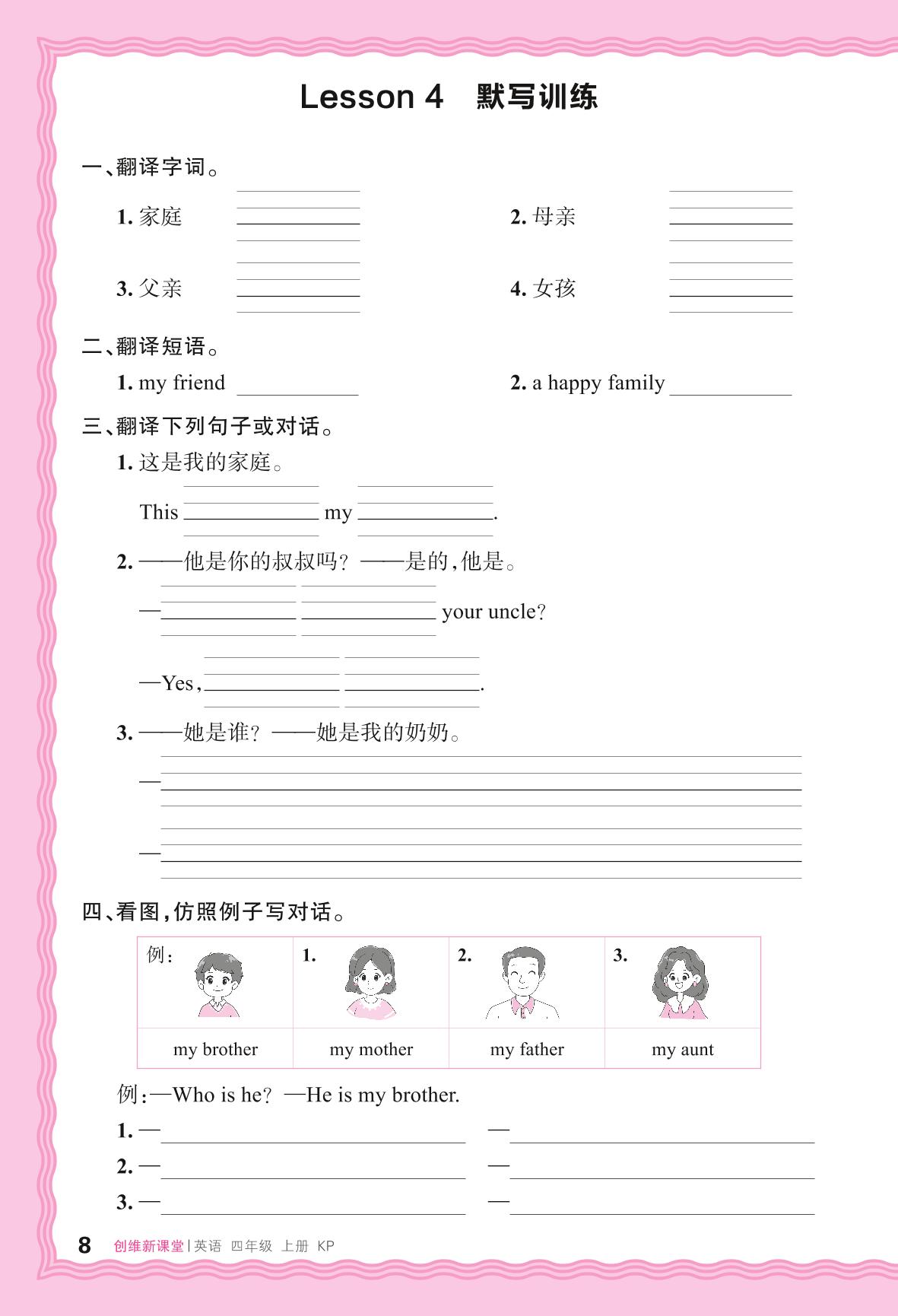 2024秋上册四年级英语科普版 Lesson 4 默写训练
