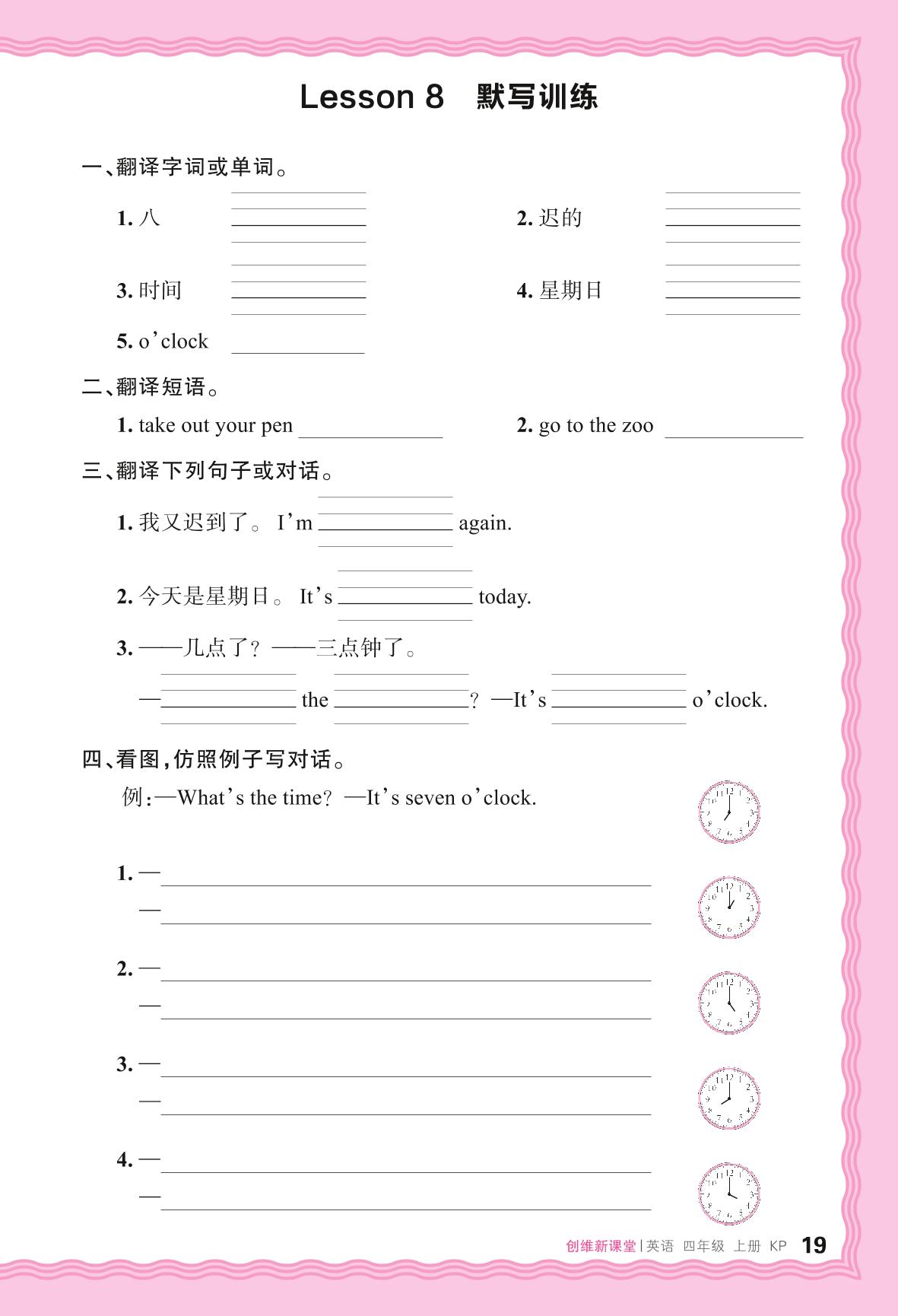 2024秋上册四年级英语科普版 Lesson 8 默写训练