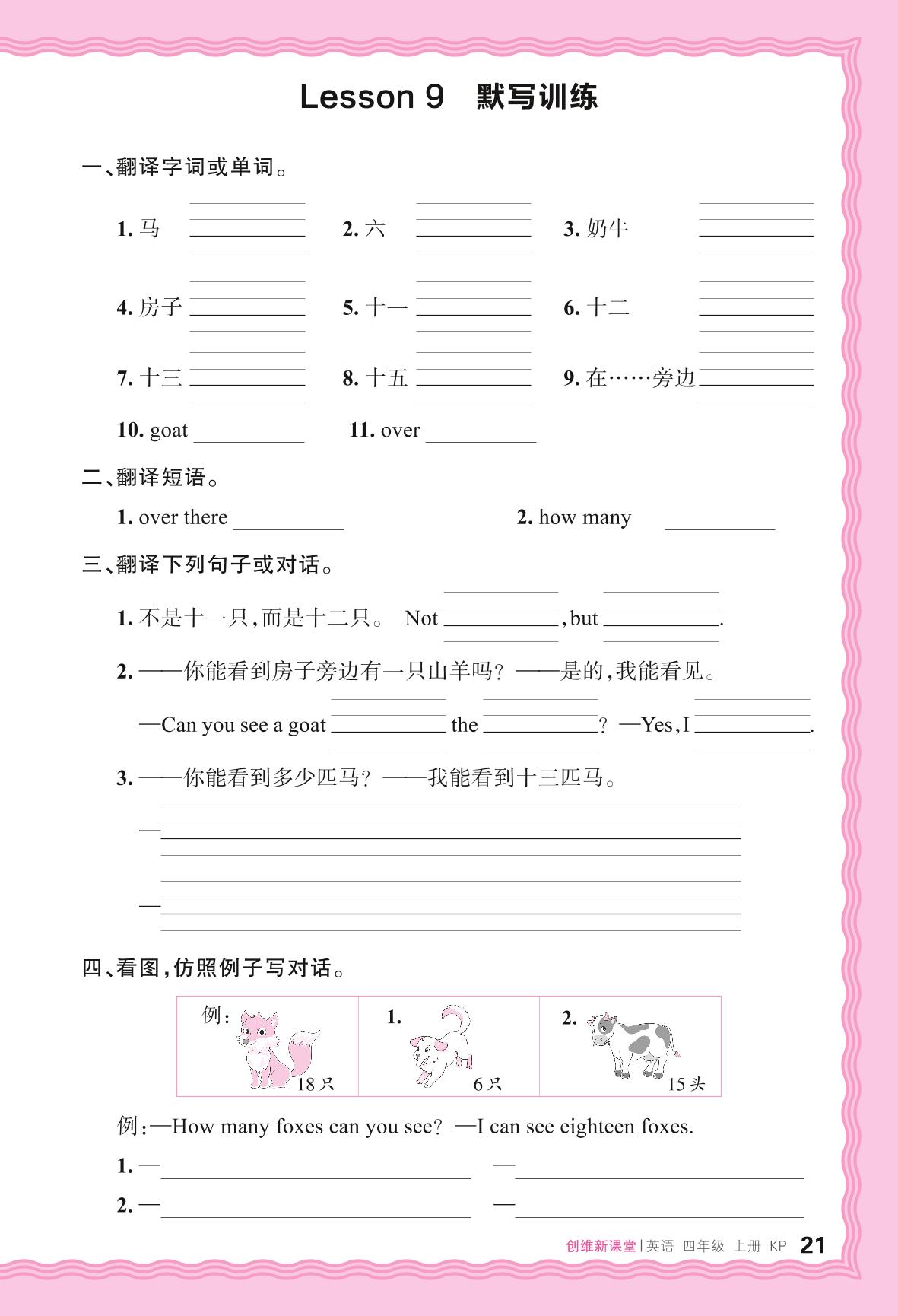 2024秋上册四年级英语科普版 Lesson 9 默写训练