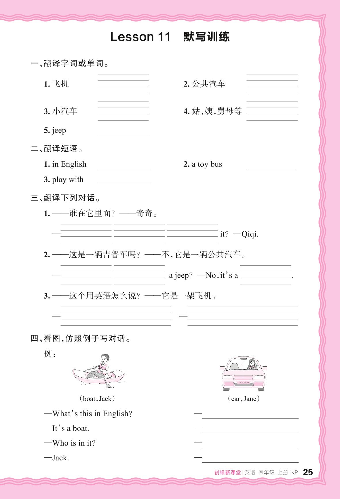 2024秋上册四年级英语科普版 Lesson 11 默写训练