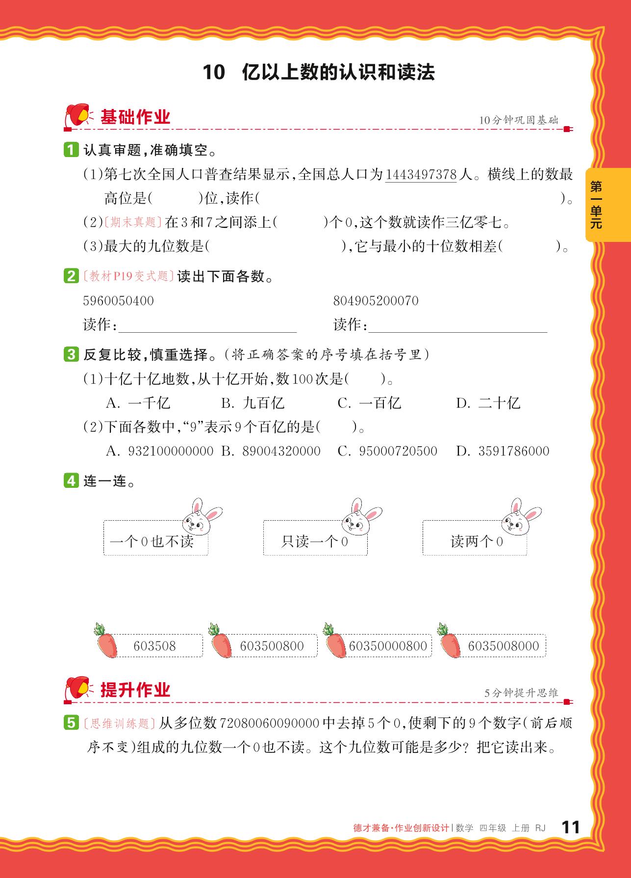 2024秋上册四年级数学人教版 第一单元 大数的认识——10. 亿以上数的认识和读法