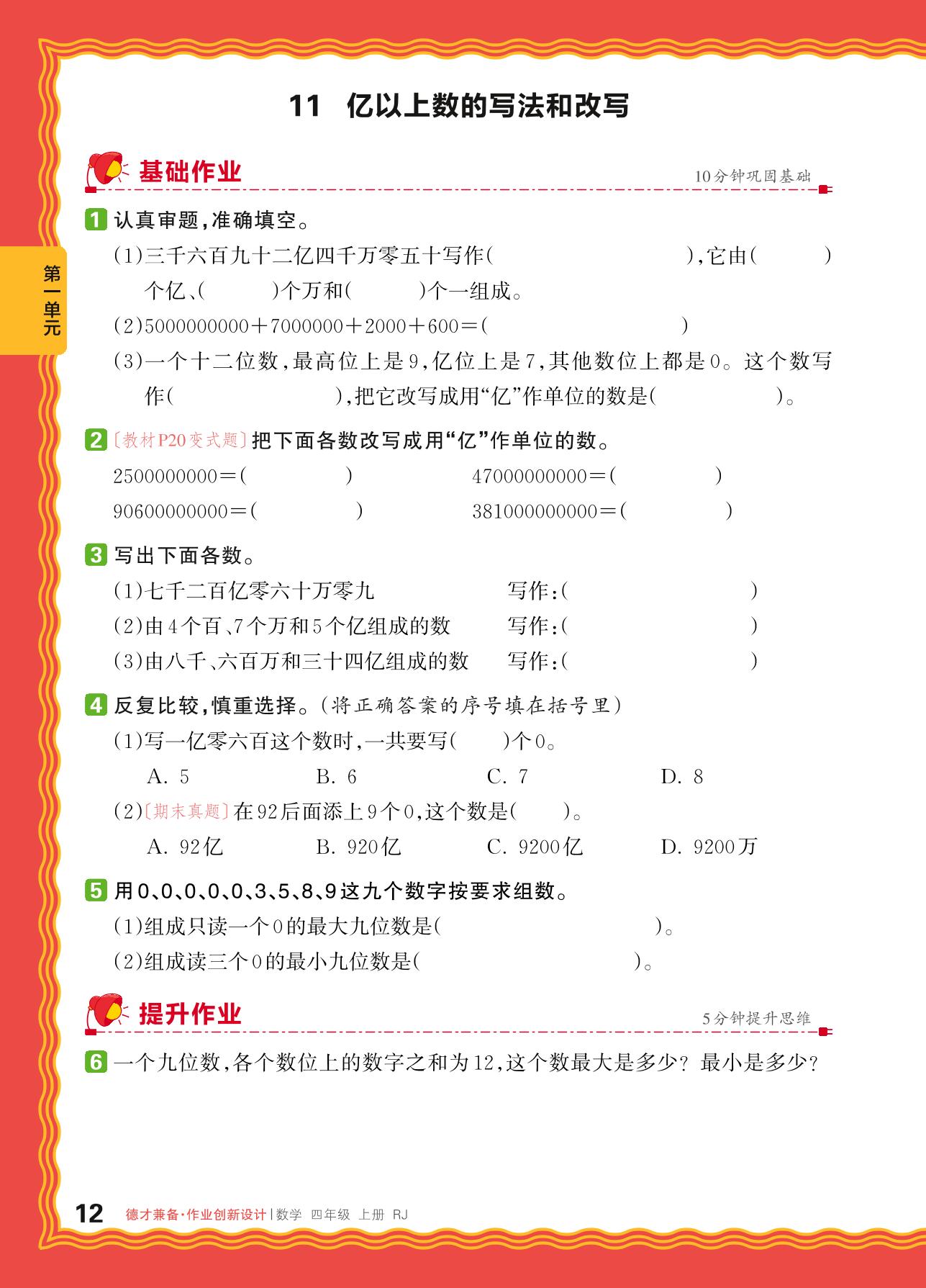2024秋上册四年级数学人教版 第一单元 大数的认识——11. 亿以上数的写法和改写