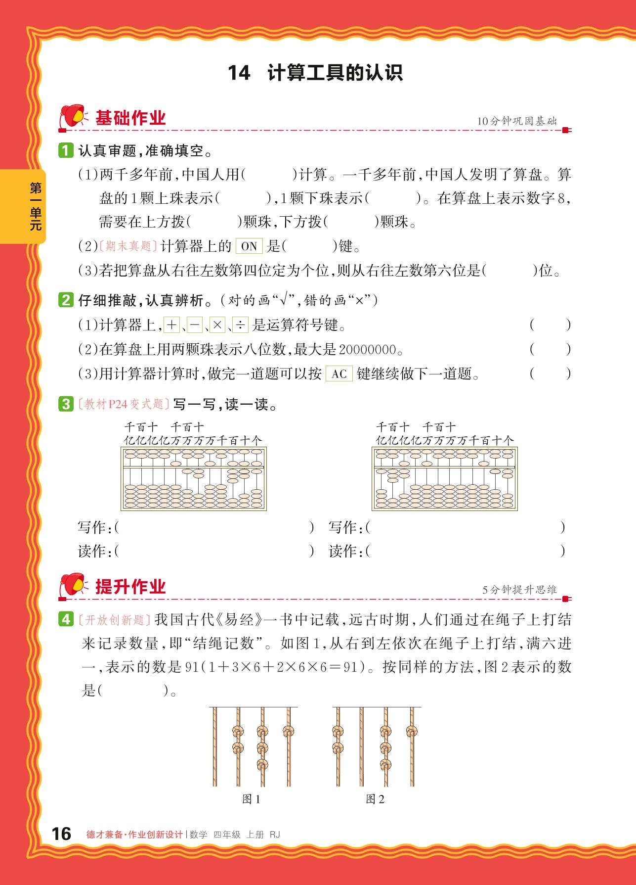 2024秋上册四年级数学人教版 第一单元 大数的认识——14. 计算工具的认识