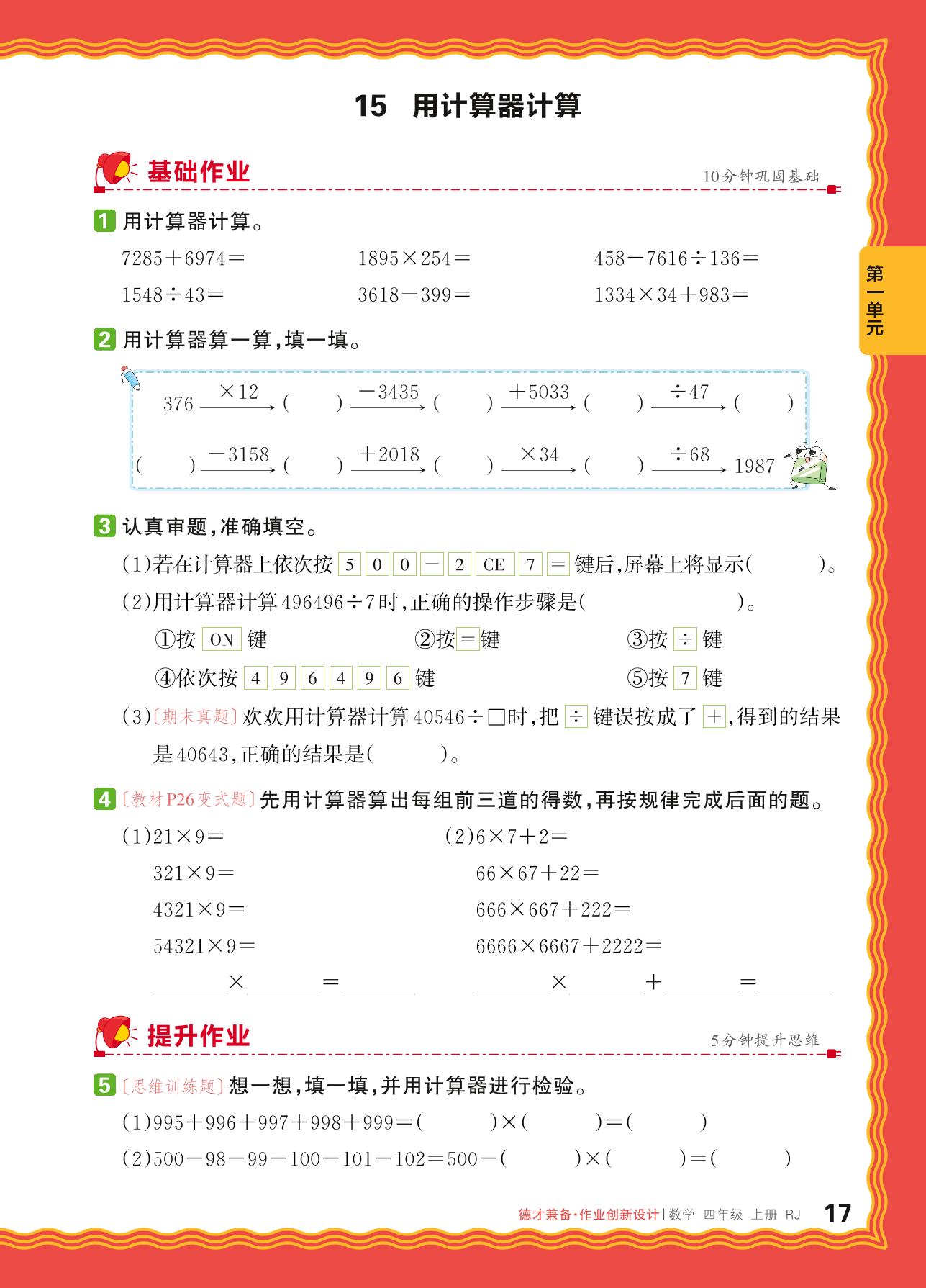 2024秋上册四年级数学人教版 第一单元 大数的认识——15. 用计算器计算