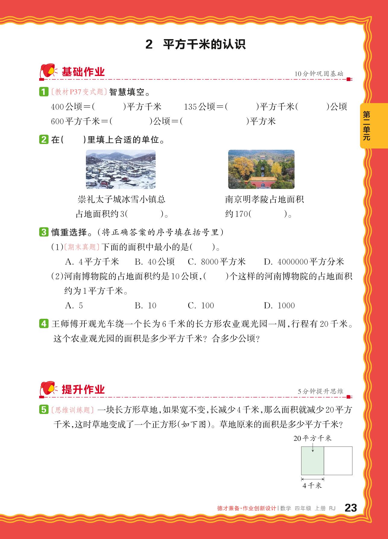 2024秋上册四年级数学人教版 第二单元 公顷和平方千米——2. 平方千米的认识