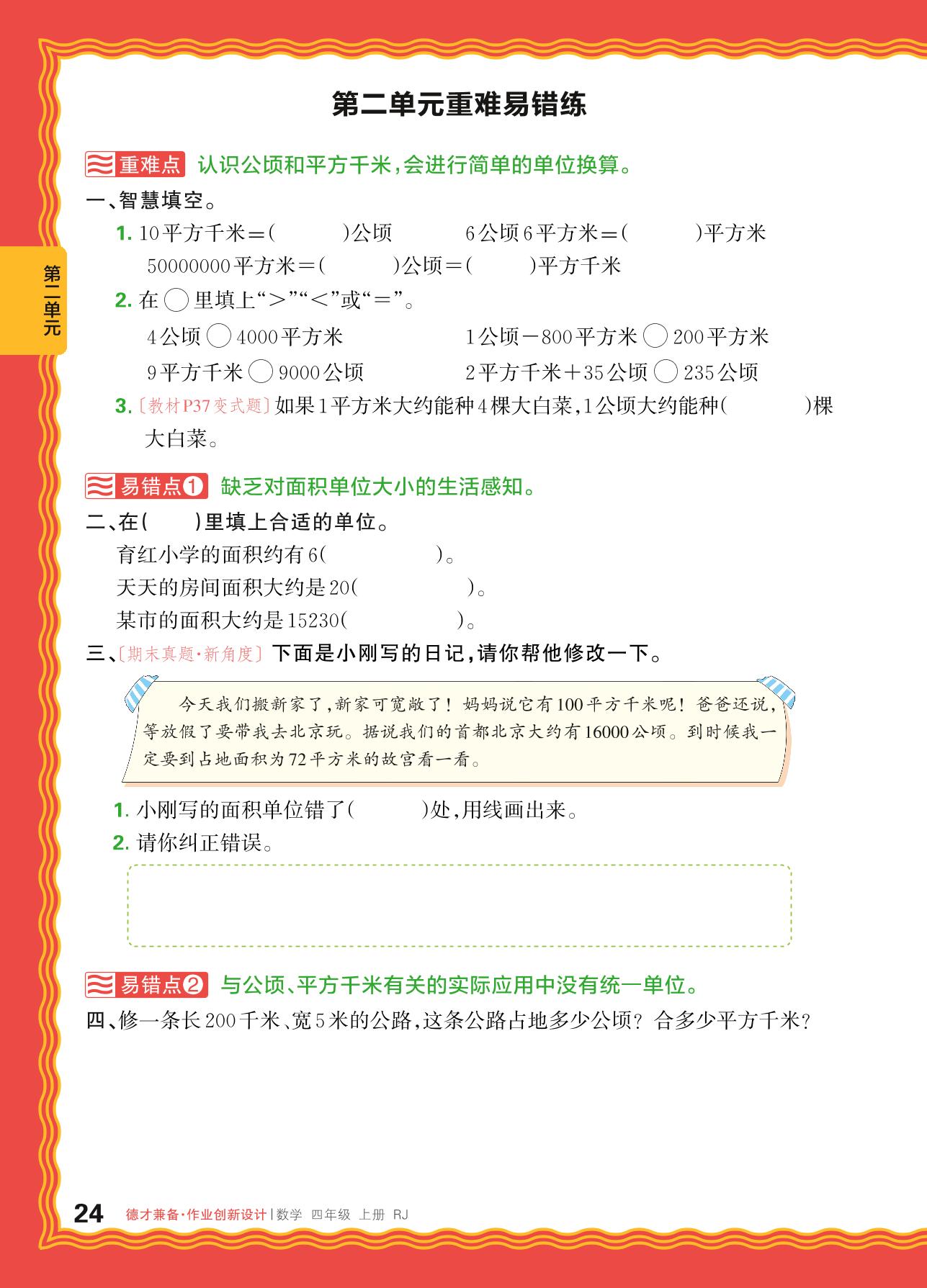 2024秋上册四年级数学人教版 第二单元重难易错练