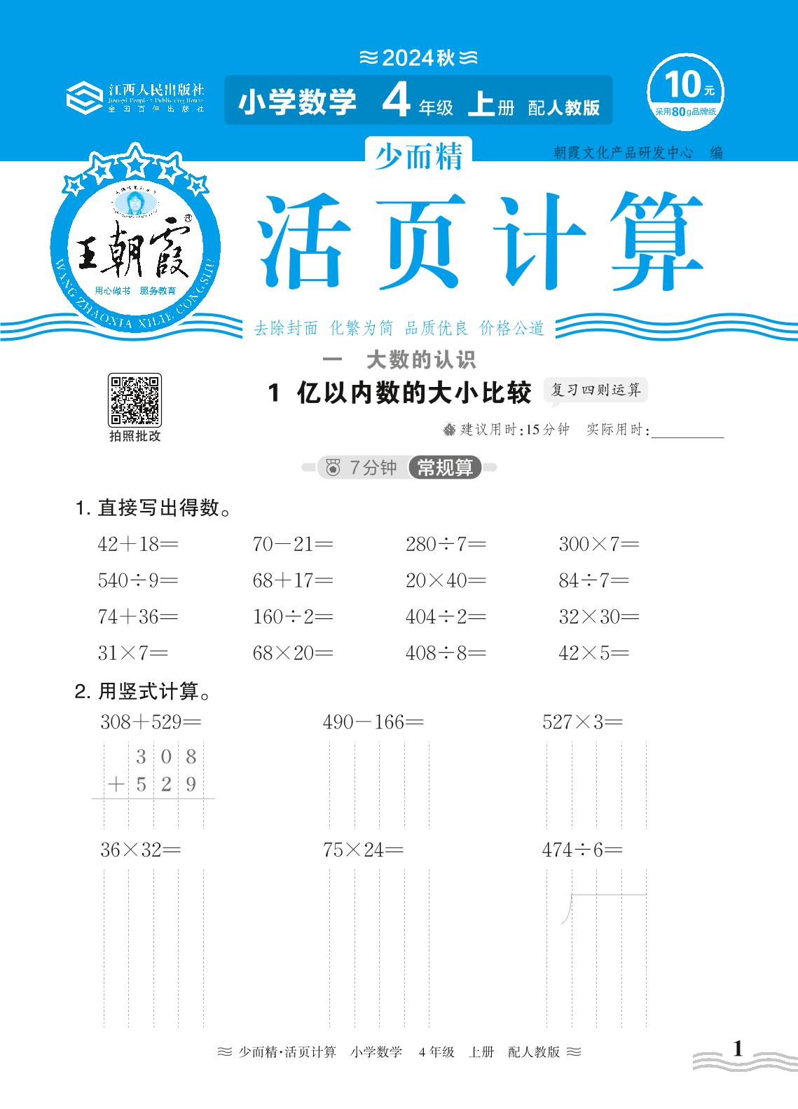 2024秋上册四年级数学人教版 第一单元 大数的认识——1. 亿以内数的大小比较