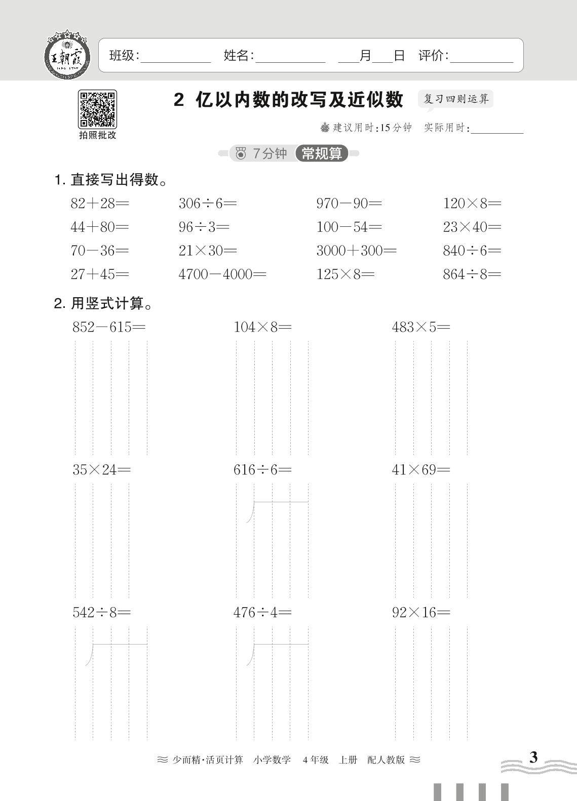 2024秋上册四年级数学人教版 第一单元 大数的认识——2. 亿以内数的改写及近似数