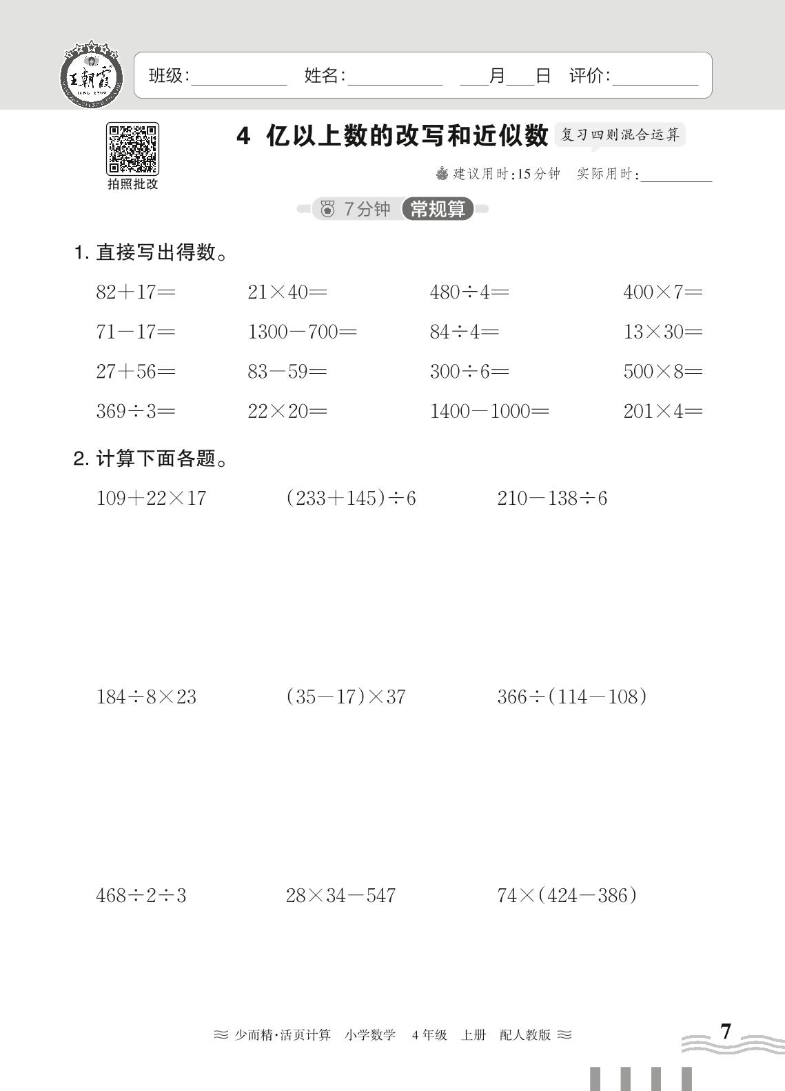 2024秋上册四年级数学人教版 第一单元 大数的认识——4. 亿以上数的改写和近似数