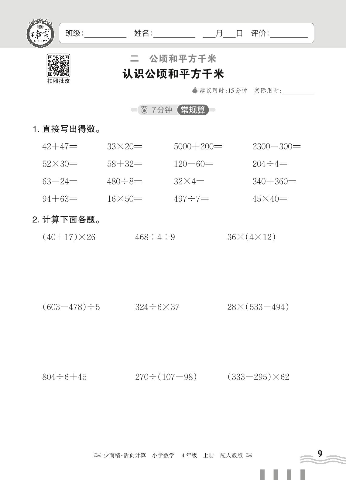 2024秋上册四年级数学人教版 第二单元 公顷和平方千米——认识公顷和平方千米
