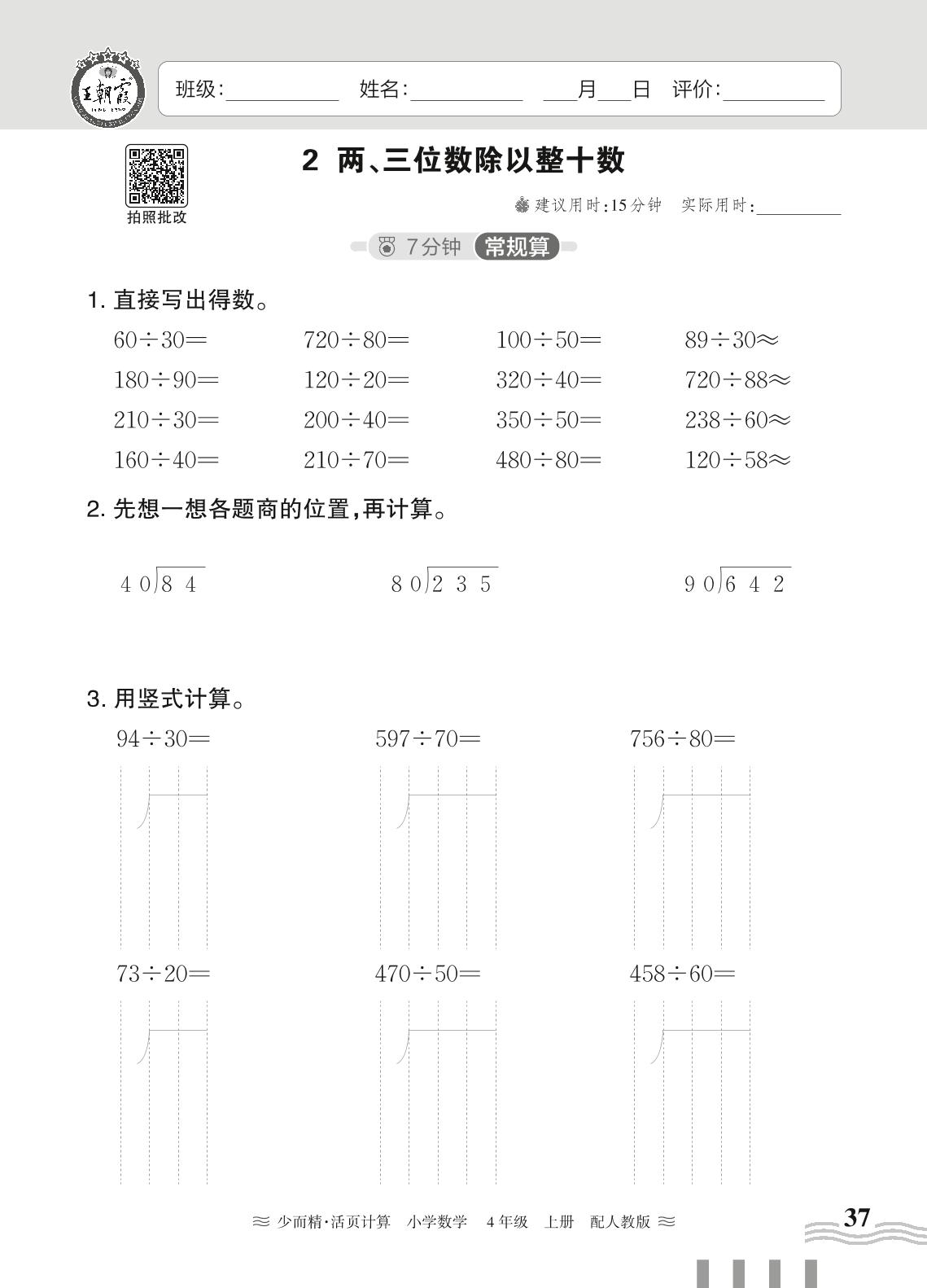 2024秋上册四年级数学人教版 第六单元 除数是两位数的除法——2. 两、三位数除以整十数