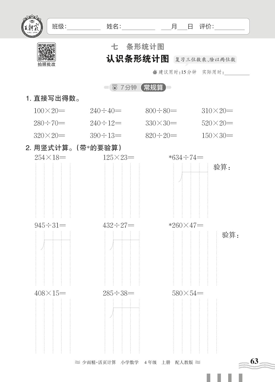 2024秋上册四年级数学人教版 第七单元 条形统计图——认识条形统计图