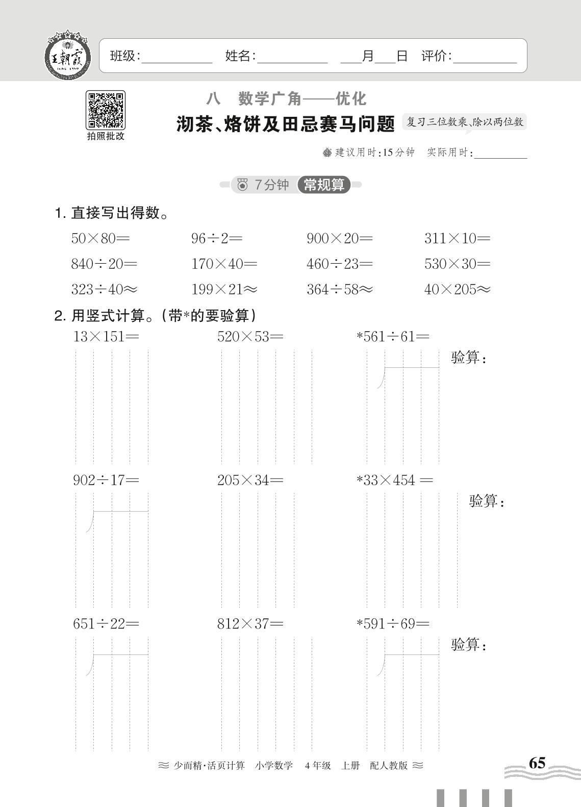 2024秋上册四年级数学人教版 第八单元 数学广角 优化——沏茶、烙饼及田忌赛马问题