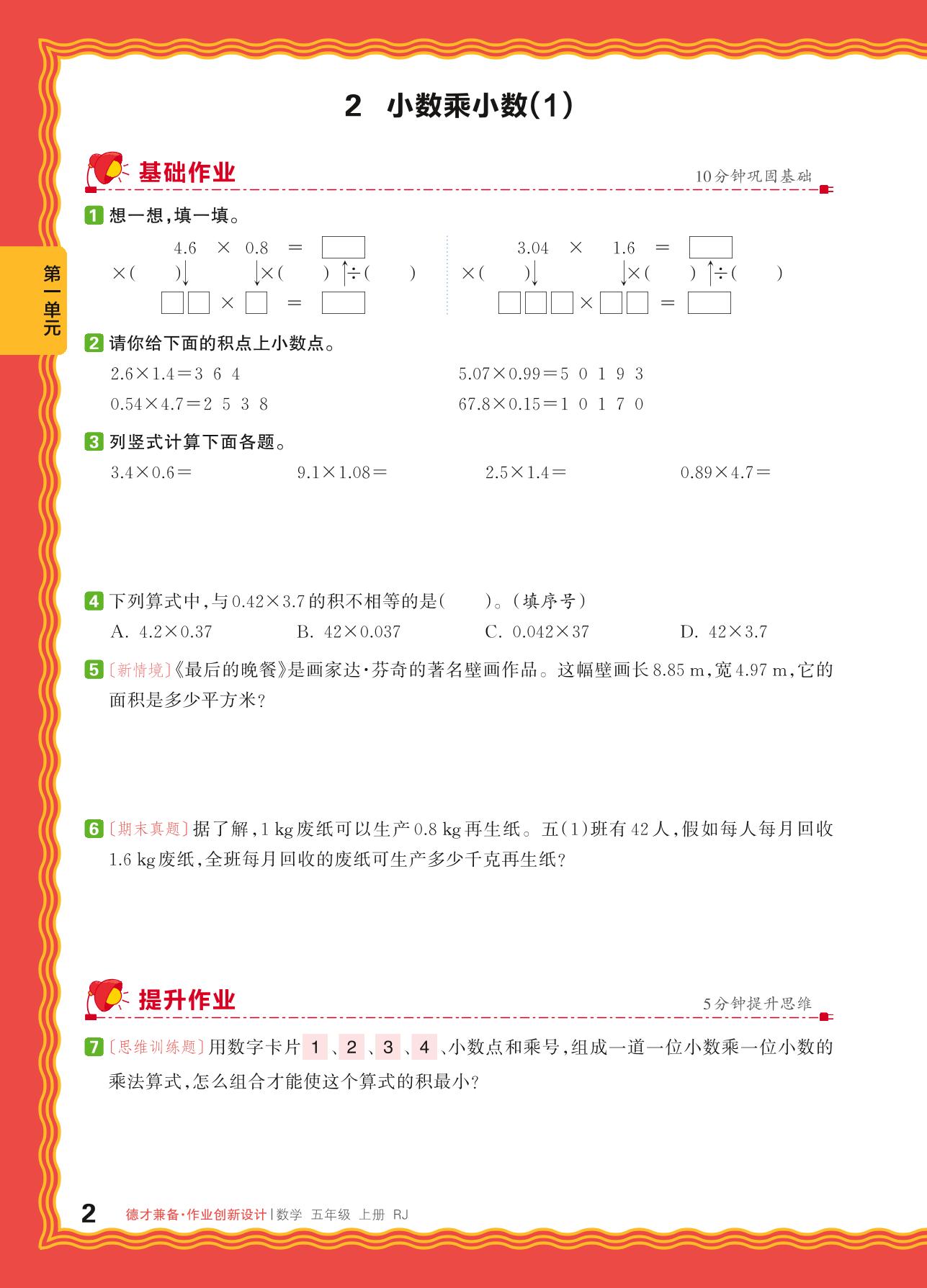 2024秋上册五年级数学人教版 第一单元 小数乘法——2. 小数乘小数(1)