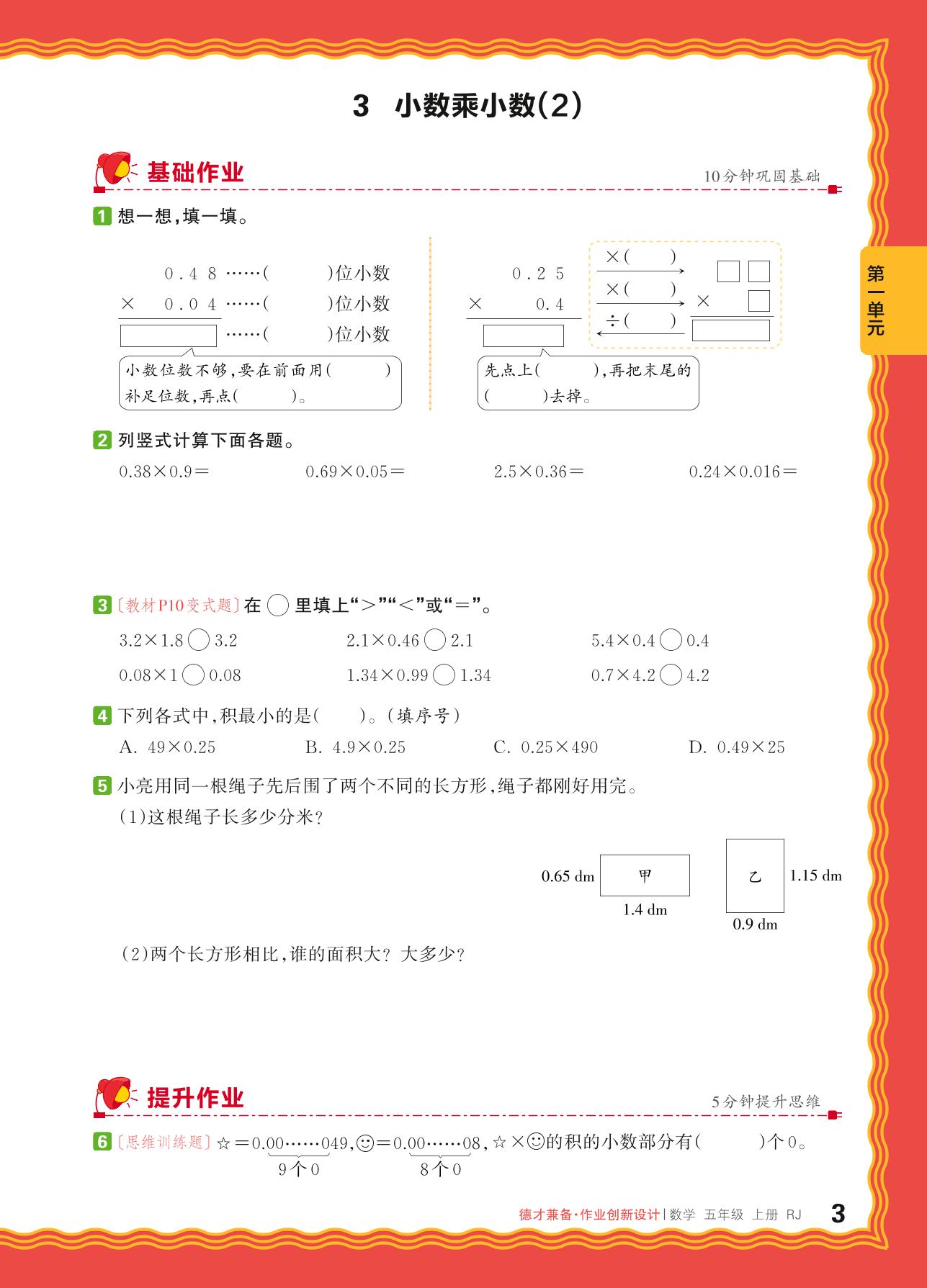 2024秋上册五年级数学人教版 第一单元 小数乘法——3. 小数乘小数(2)
