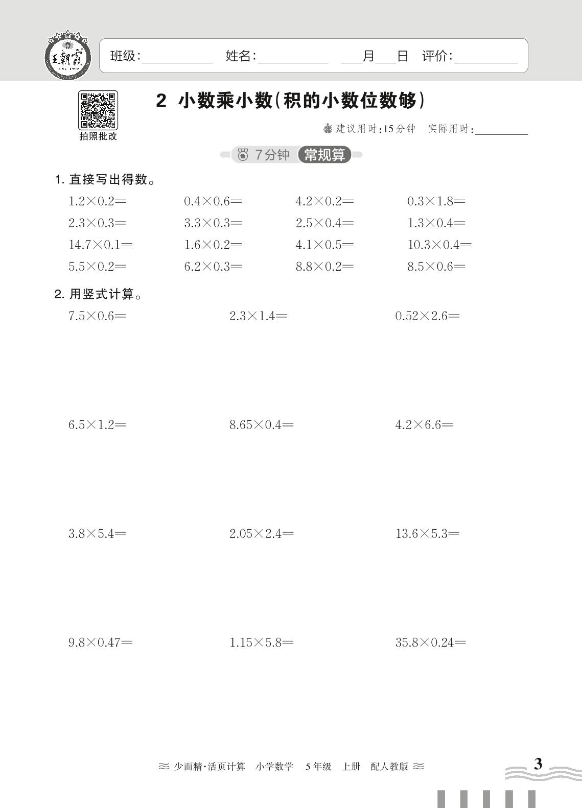 2024秋上册五年级数学人教版 第一单元 小数乘法——2. 小数乘小数(积的小数位数够)