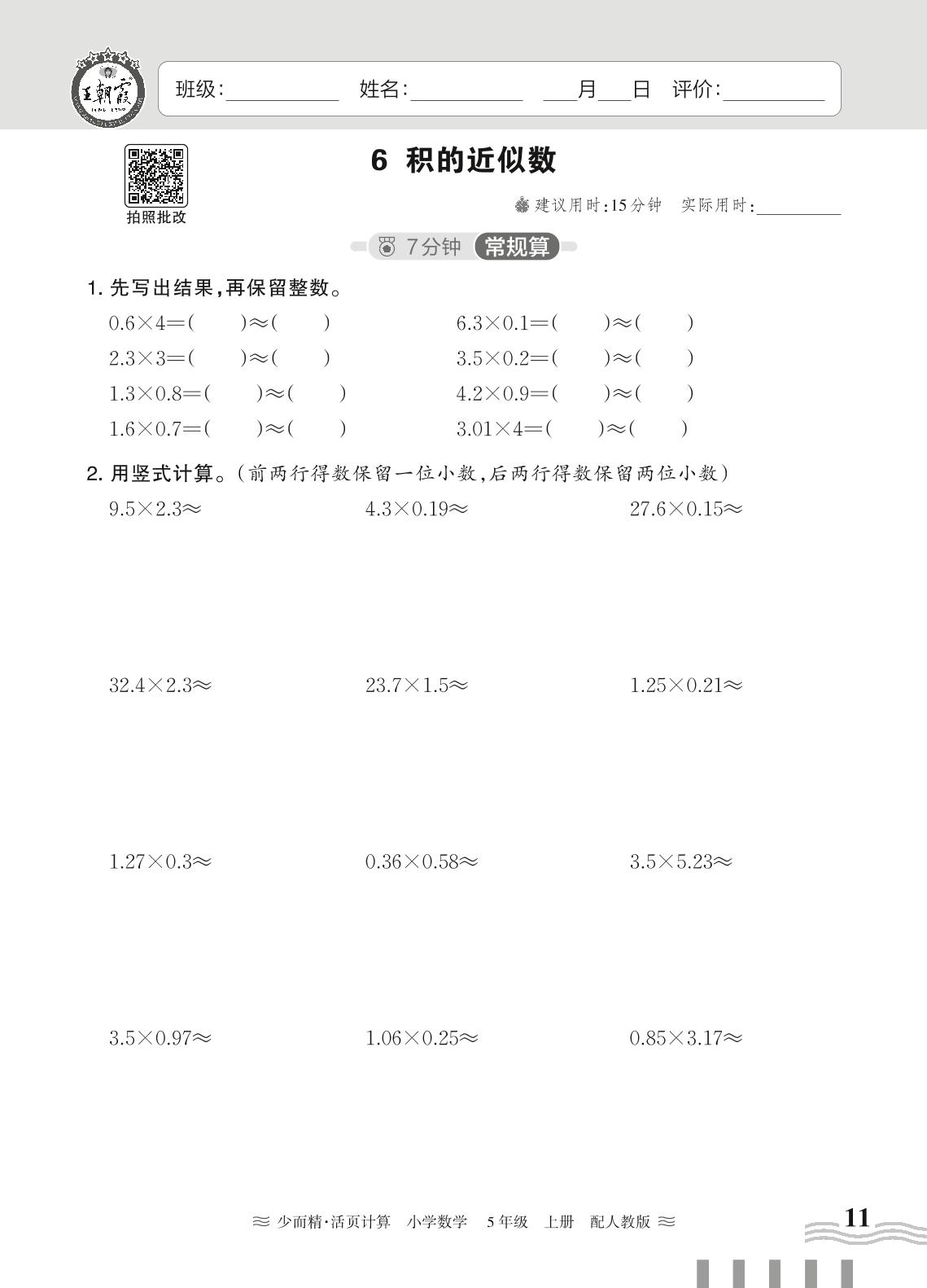 2024秋上册五年级数学人教版 第一单元 小数乘法——6. 积的近似数_R240819110312900