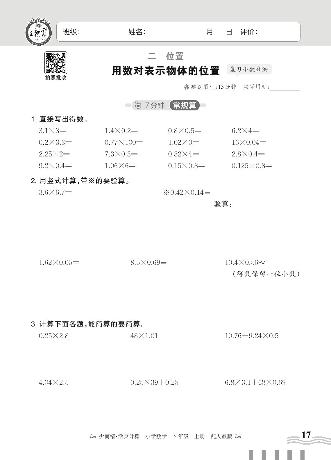 2024秋上册五年级数学人教版 第二单元 位置——用数对表示物体的位置