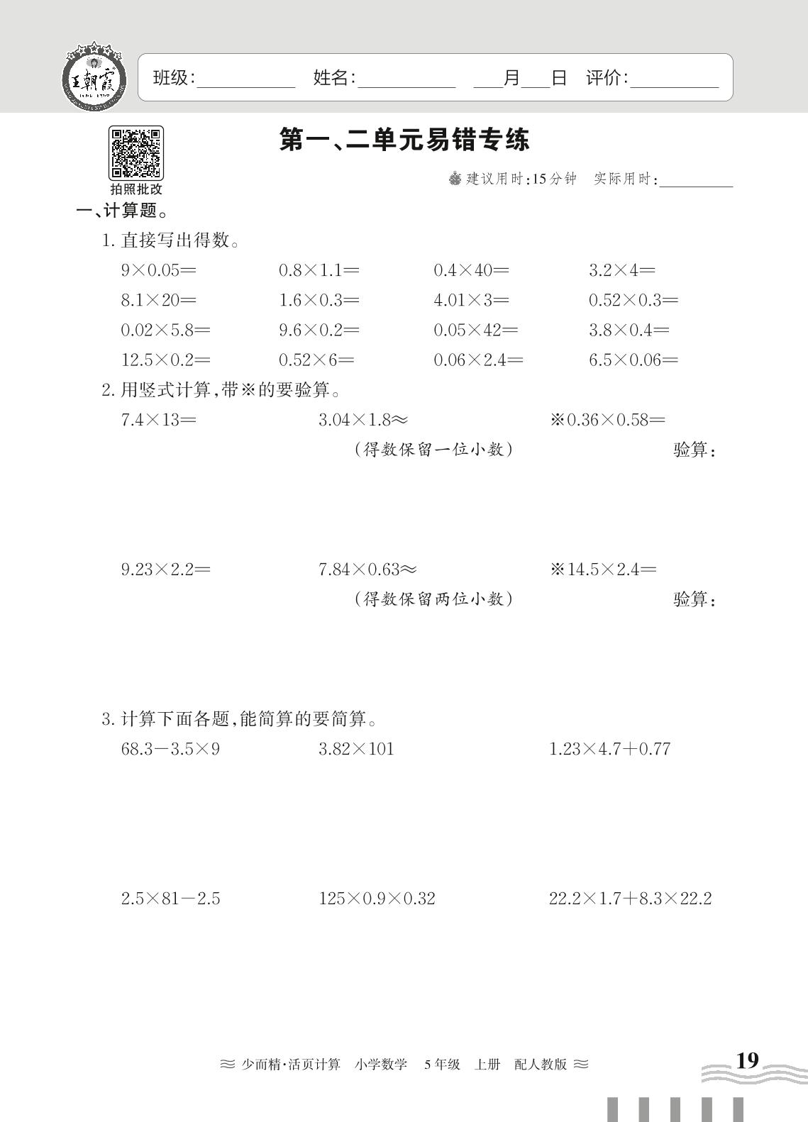 2024秋上册五年级数学人教版 第一、二单元易错专练