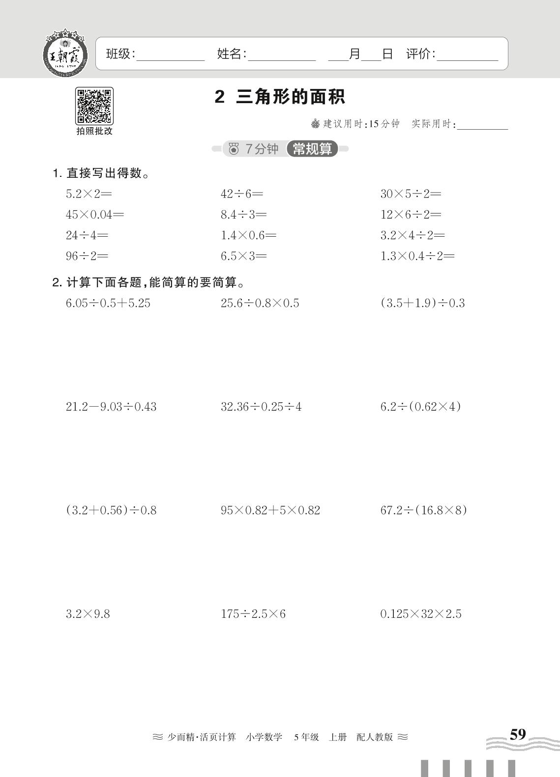 2024秋上册五年级数学人教版 第六单元 多边形的面积——2. 三角形的面积