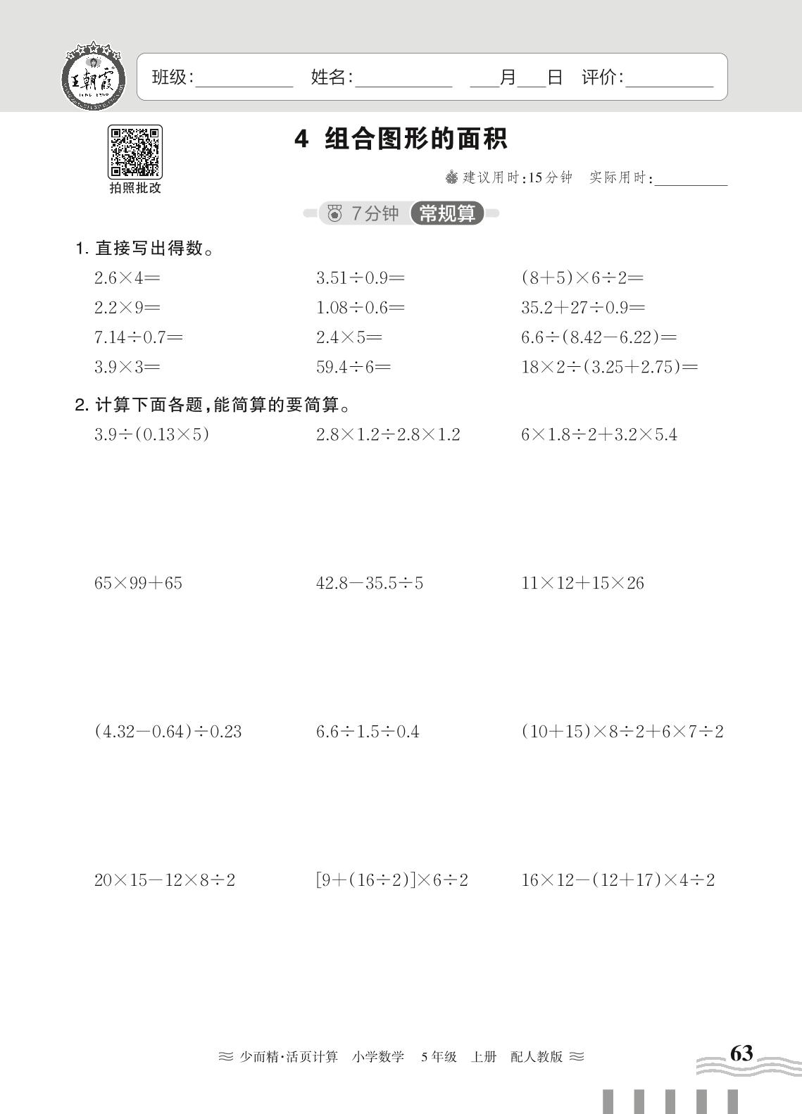 2024秋上册五年级数学人教版 第六单元 多边形的面积——4. 组合图形的面积