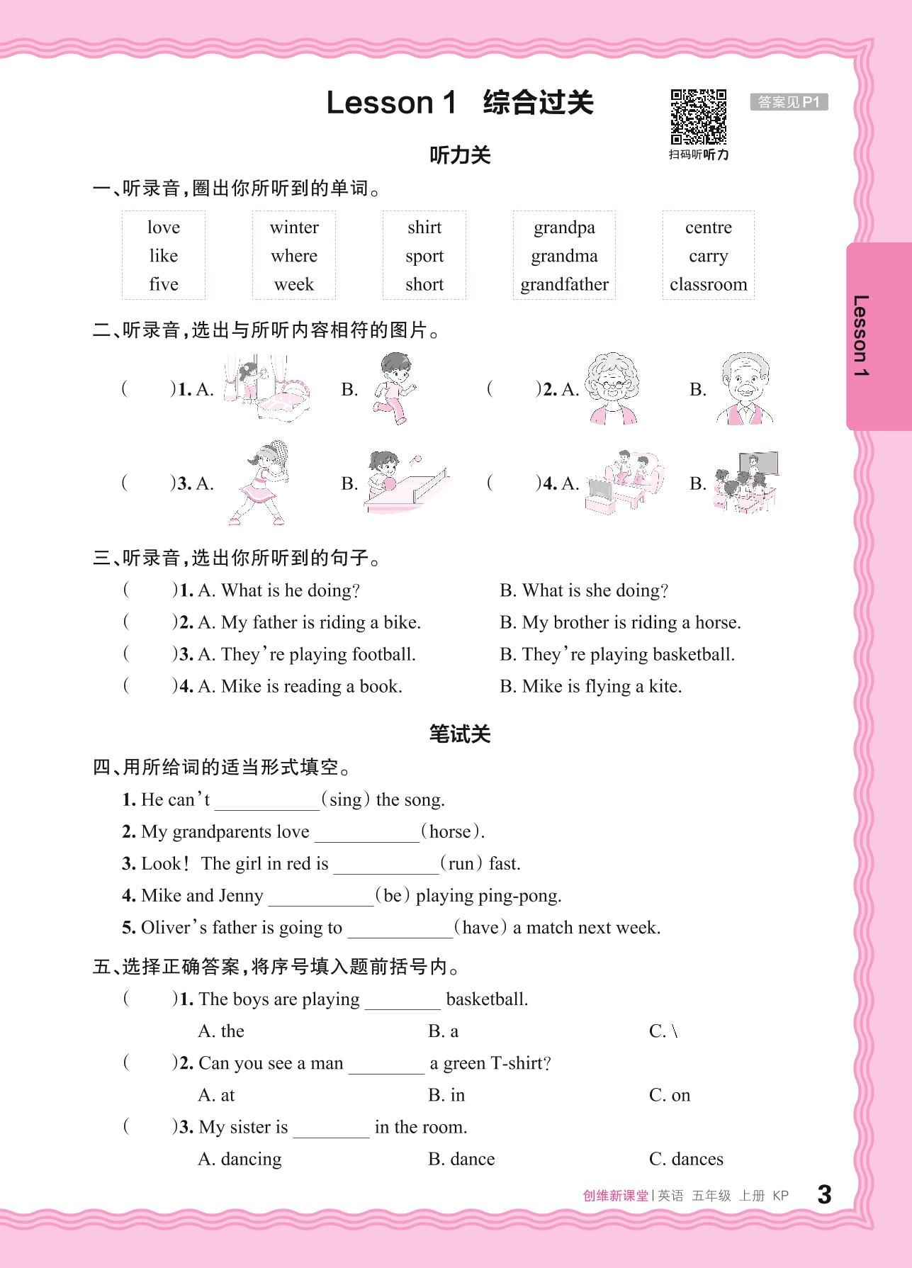 2024秋上册五年级英语科普版 Lesson 1 What is she doing?综合过关