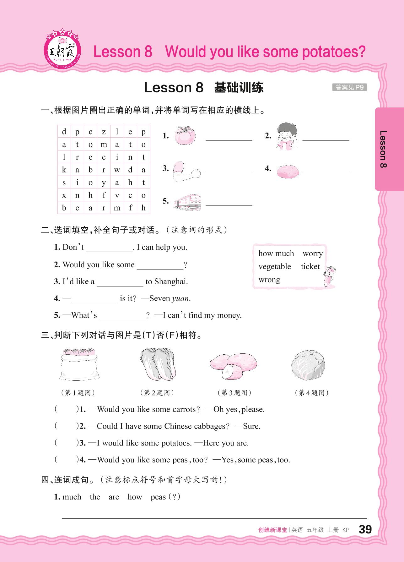 2024秋上册五年级英语科普版 Lesson 8 Would you like some potatoes?基础训练