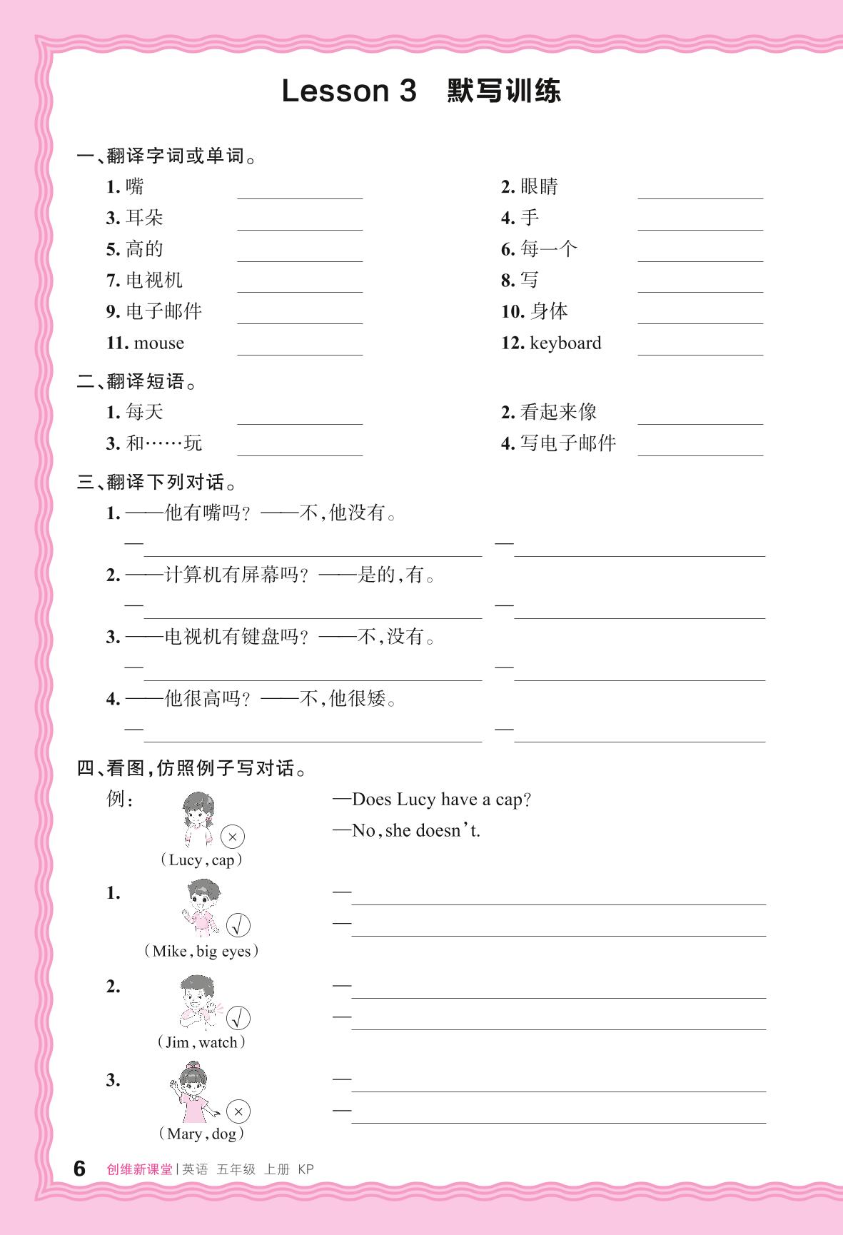 2024秋上册五年级英语科普版 Lesson 3 默写训练