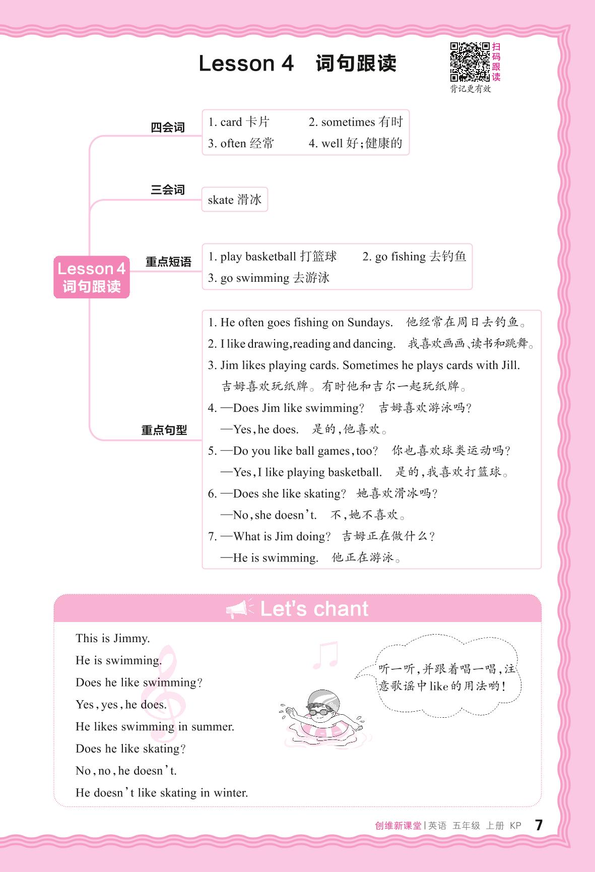 2024秋上册五年级英语科普版 Lesson 4 词句跟读