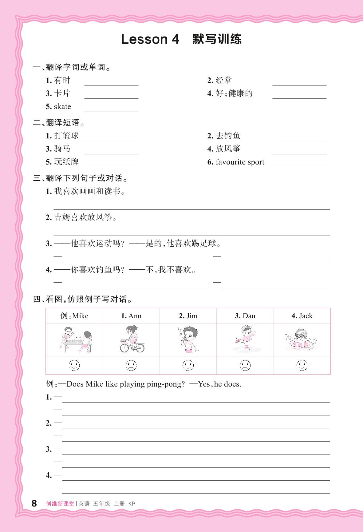 2024秋上册五年级英语科普版 Lesson 4 默写训练