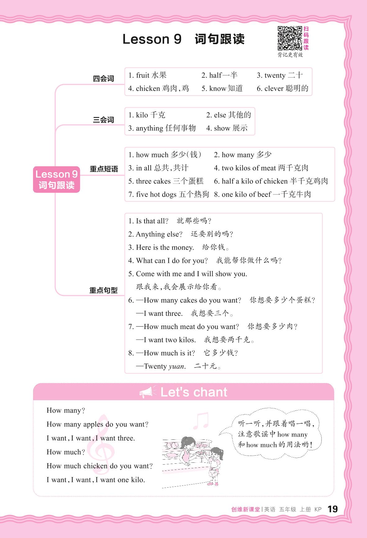 2024秋上册五年级英语科普版 Lesson 9 词句跟读