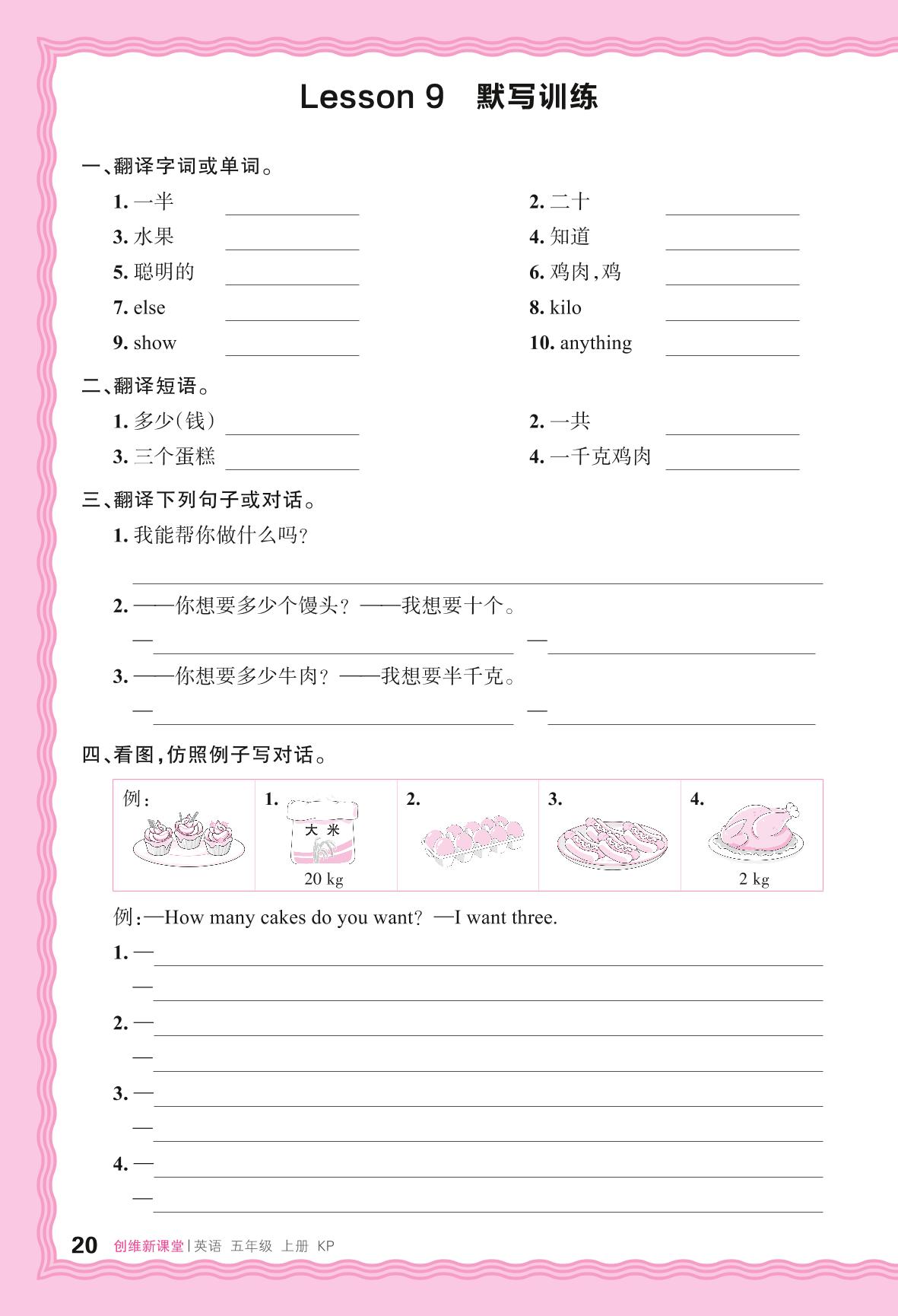 2024秋上册五年级英语科普版 Lesson 9 默写训练