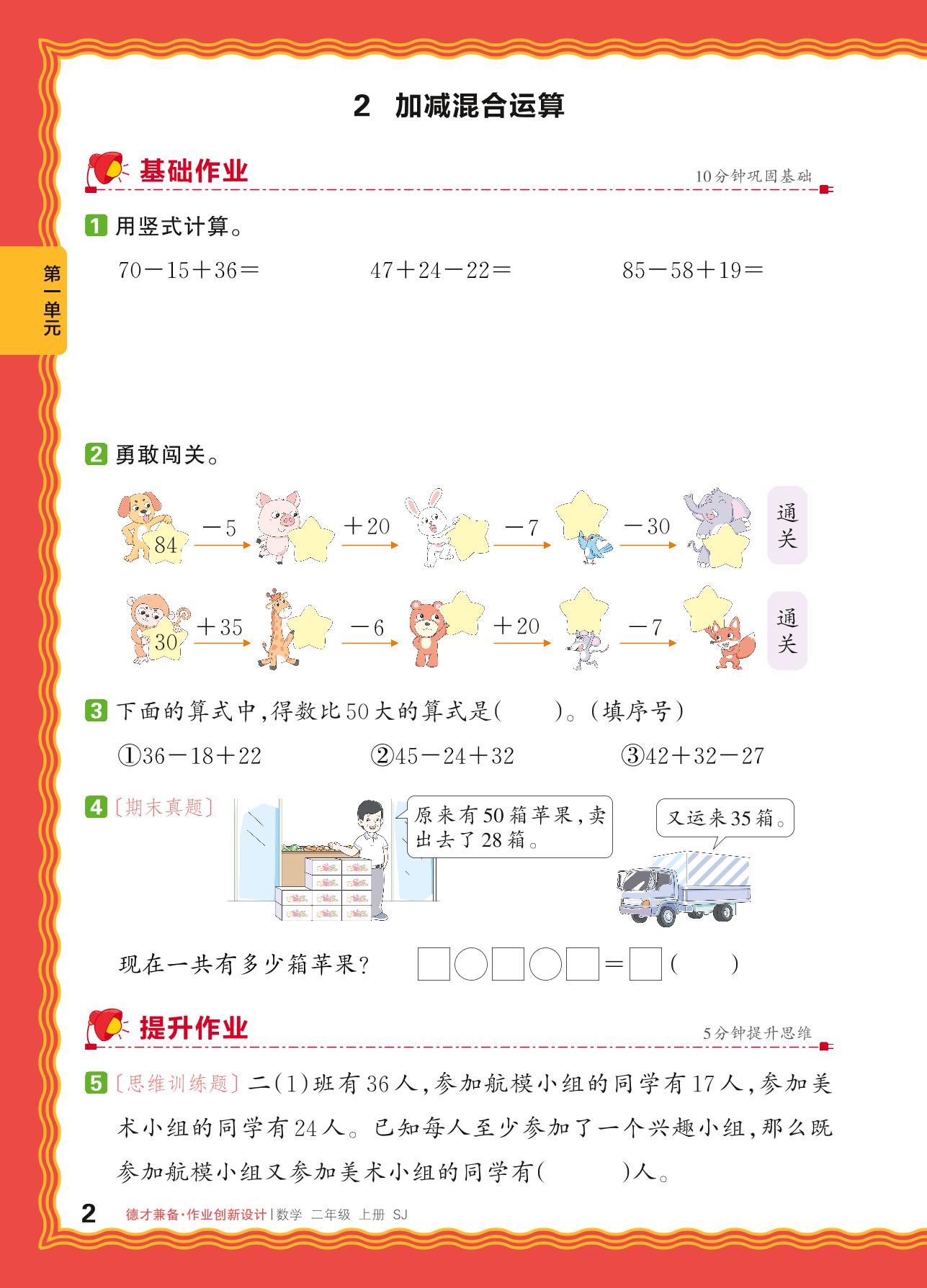 2024秋上册二年级数学苏教版 第一单元 100以内的加法和减法(三)——2. 加减混合运算_R240819110907795