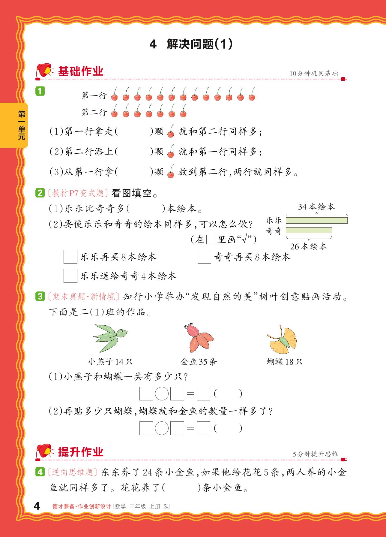 2024秋上册二年级数学苏教版 第一单元 100以内的加法和减法(三)——4. 解决问题(1)