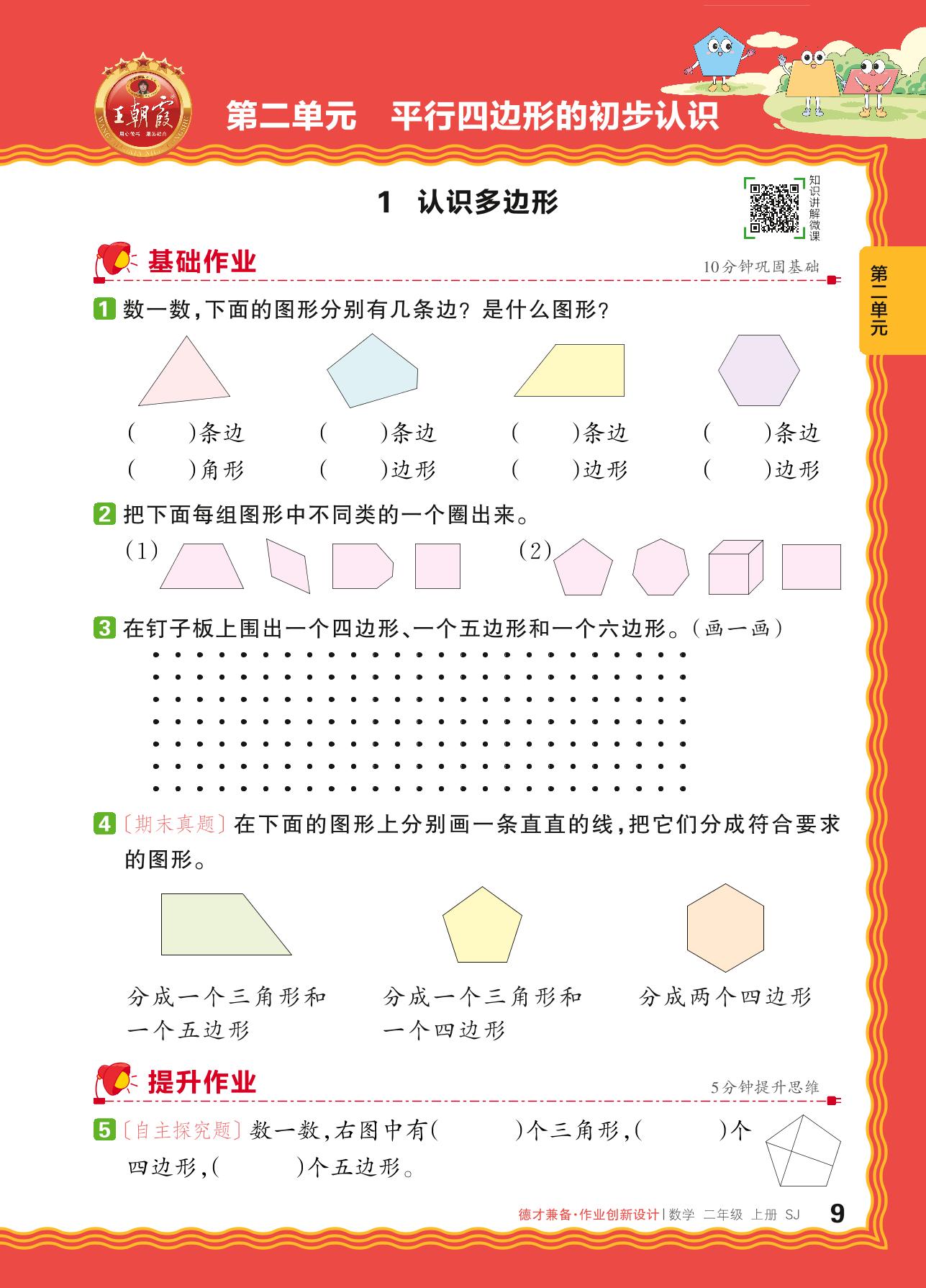 2024秋上册二年级数学苏教版 第二单元 平行四边形的初步认识——1. 认识多边形