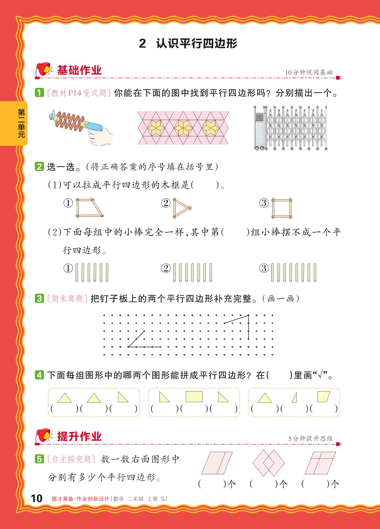 2024秋上册二年级数学苏教版 第二单元 平行四边形的初步认识——2. 认识平行四边形