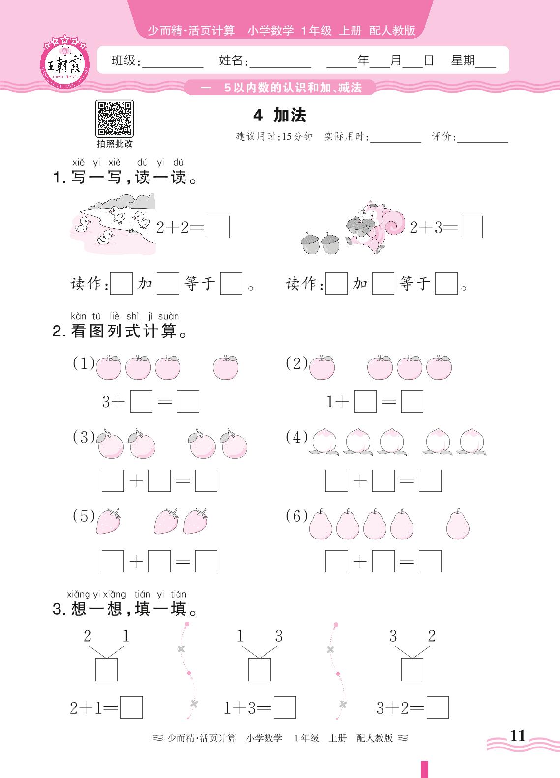 2024秋上册一年级数学人教版 第一单元 5以内数的认识和加、减法——4. 加法