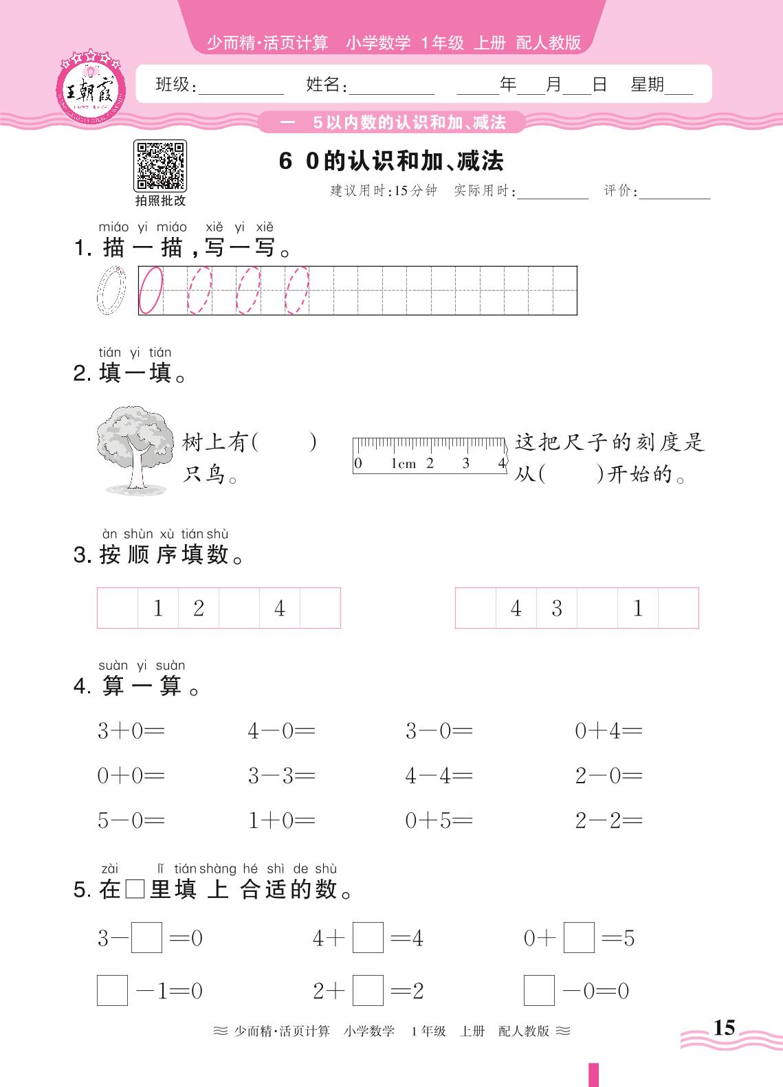 2024秋上册一年级数学人教版 第一单元 5以内数的认识和加、减法——6. 0的认识和加、减法