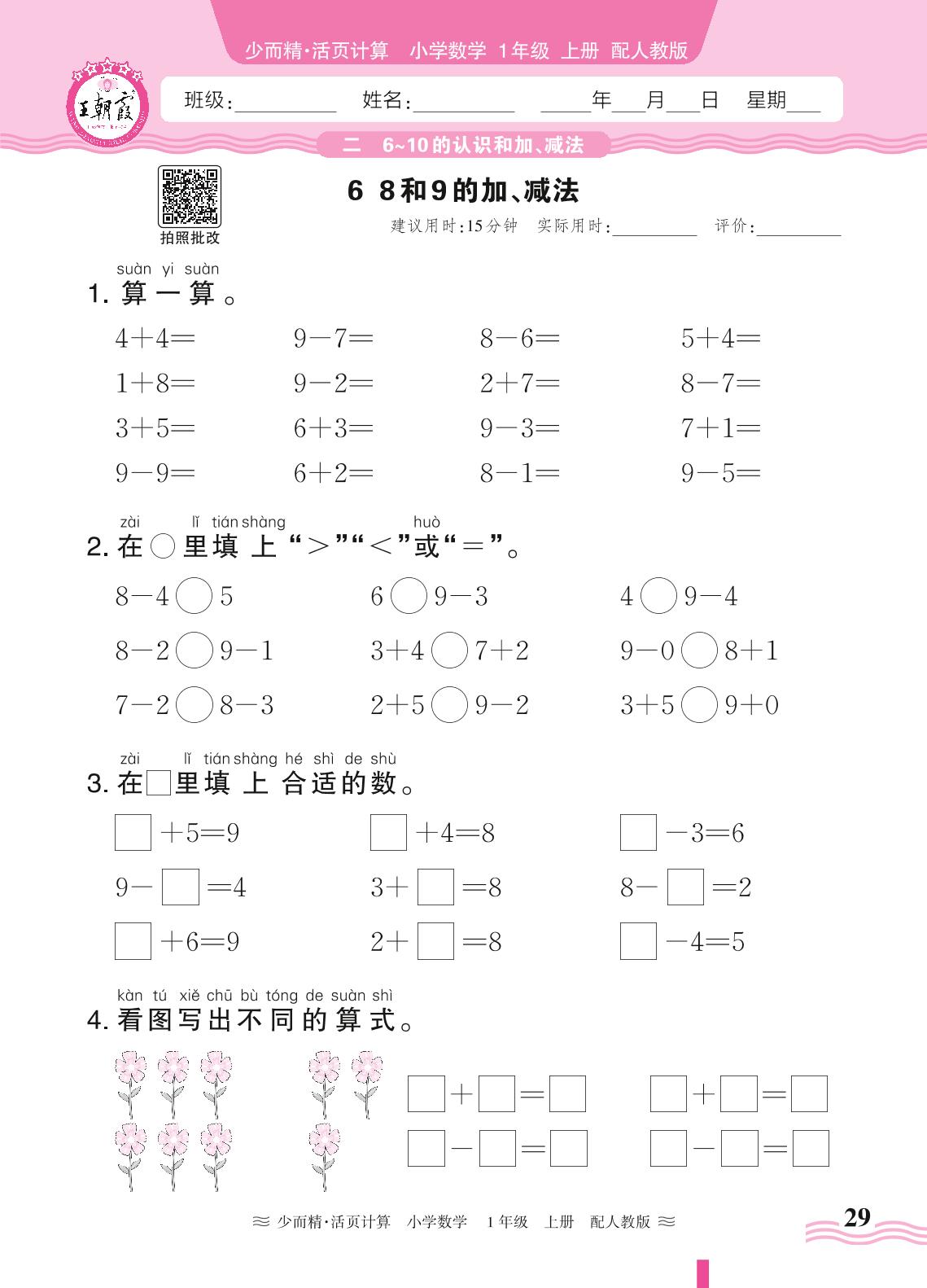 2024秋上册一年级数学人教版 第二单元 6~10的认识和加、减法——6. 8和9的加、减法
