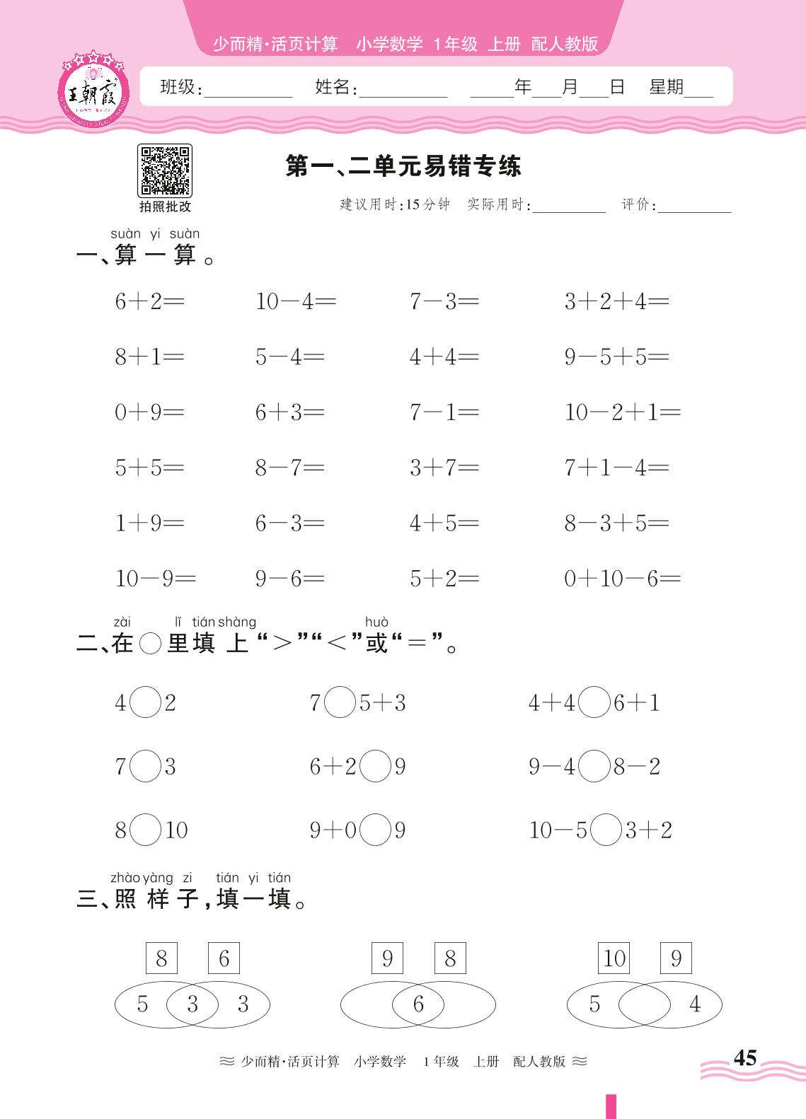 2024秋上册一年级数学人教版 第一、二单元易错专练