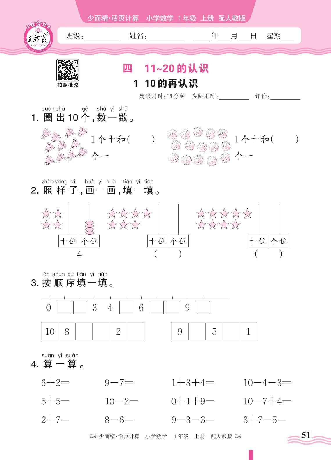 2024秋上册一年级数学人教版 第四单元 11~20的认识——1. 10的再认识_R240819110926055