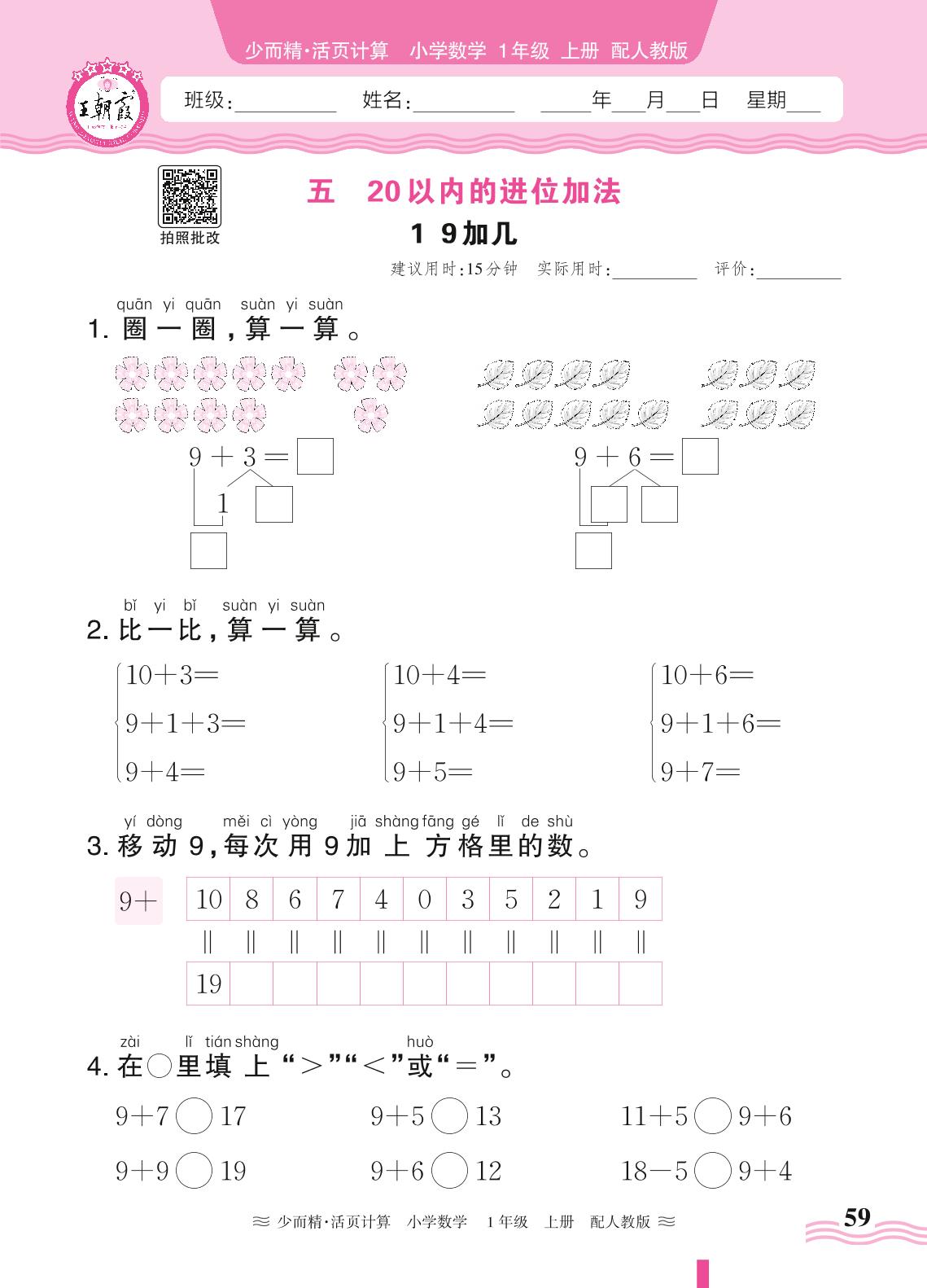 2024秋上册一年级数学人教版 第五单元 20以内的进位加法——1. 9加几
