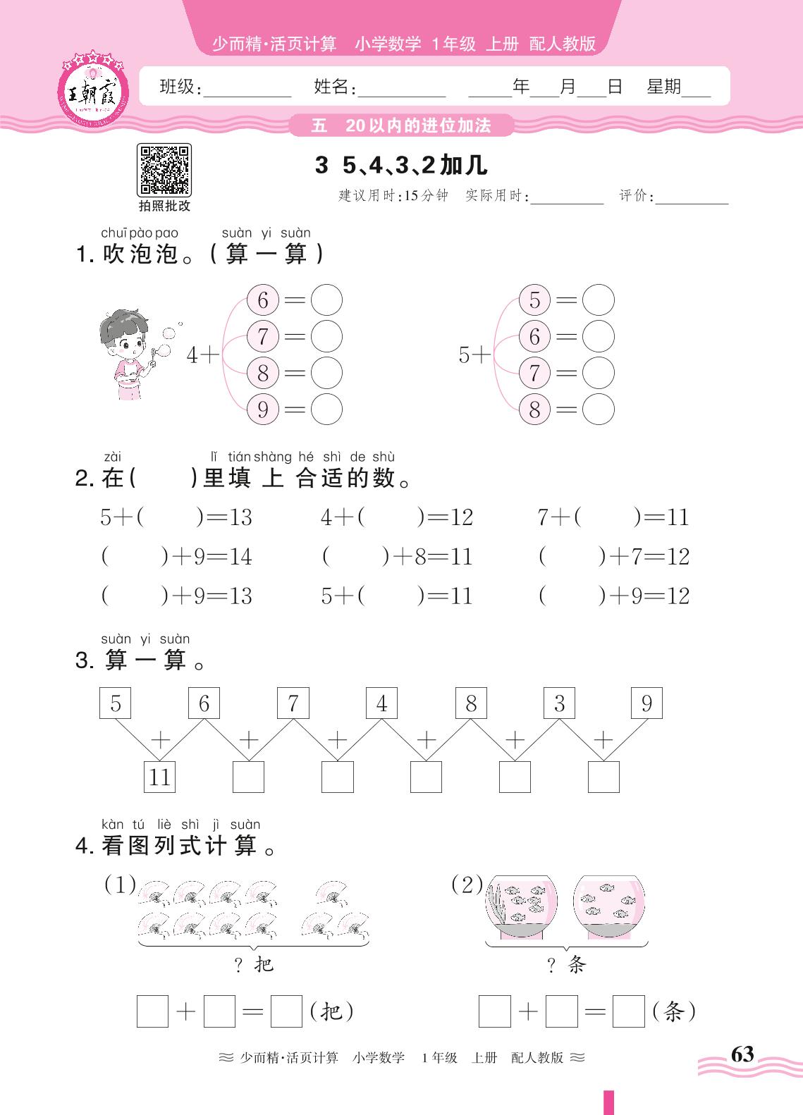 2024秋上册一年级数学人教版 第五单元 20以内的进位加法——3. 5、4、3、2加几